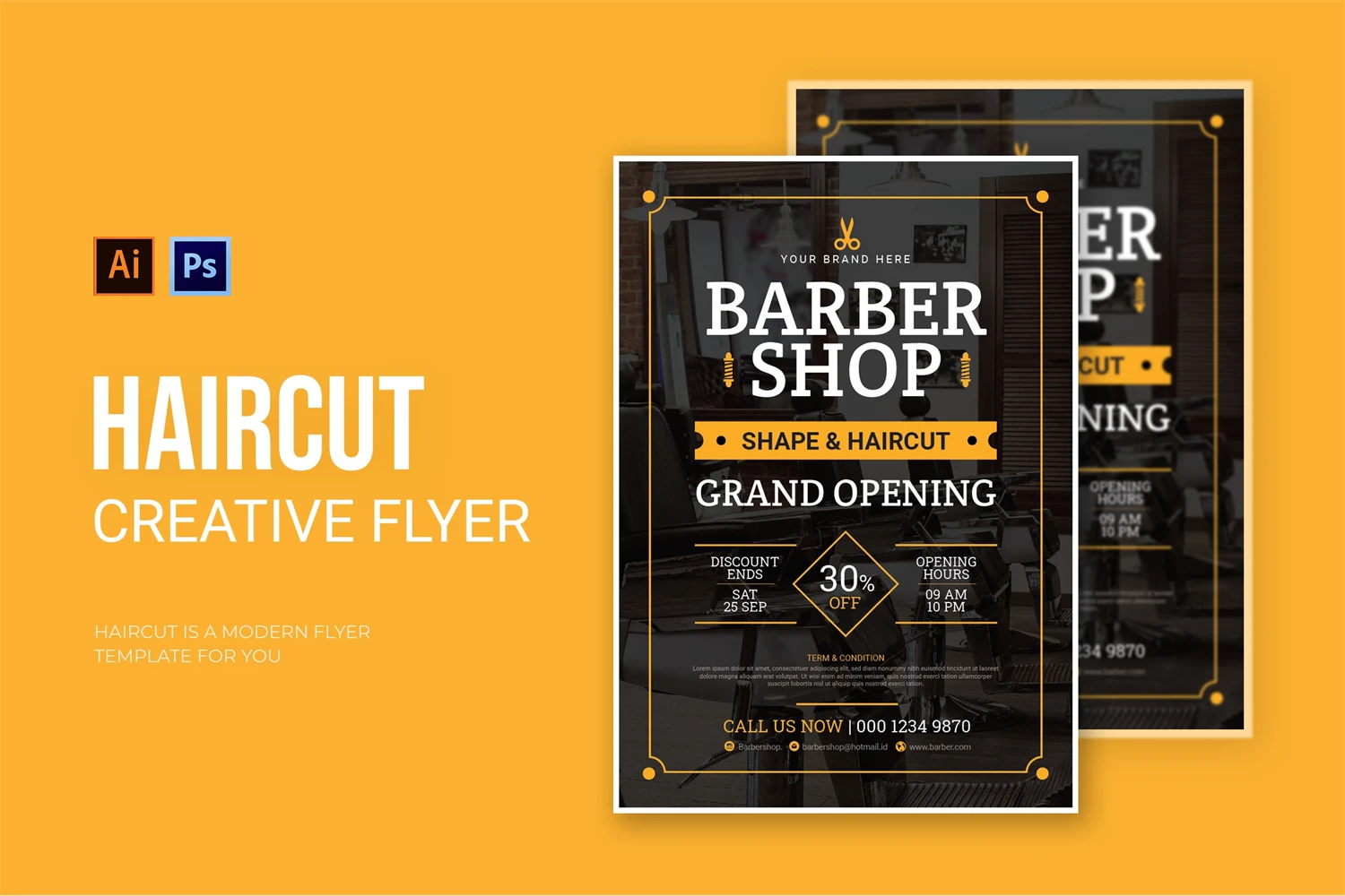 Haircut - Flyer. This Flyer template is designed for your company's business needs. very clean and elegant, and also easily edited and adjusted to your liking