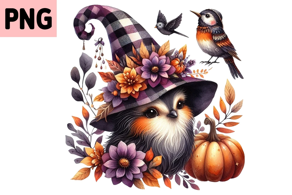-Halloween Bird Gnome Flowers Crown with flowers-Clipart Sublimation Single Design File-