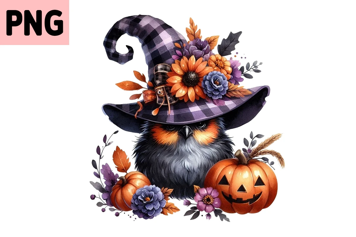 -Halloween Bird Gnome Flowers Crown with flowers-Clipart Sublimation Single Design File-