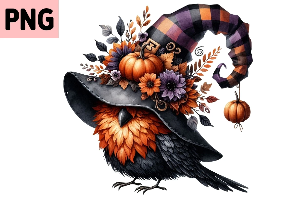 -Halloween Bird Gnome Flowers Crown with flowers-Clipart Sublimation Single Design File-