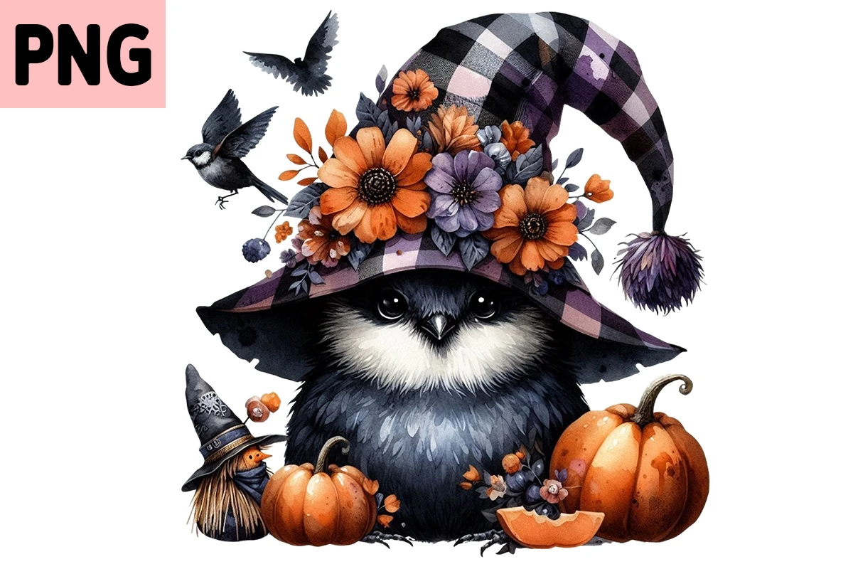 -Halloween Bird Gnome Flowers Crown with flowers-Clipart Sublimation Single Design File-