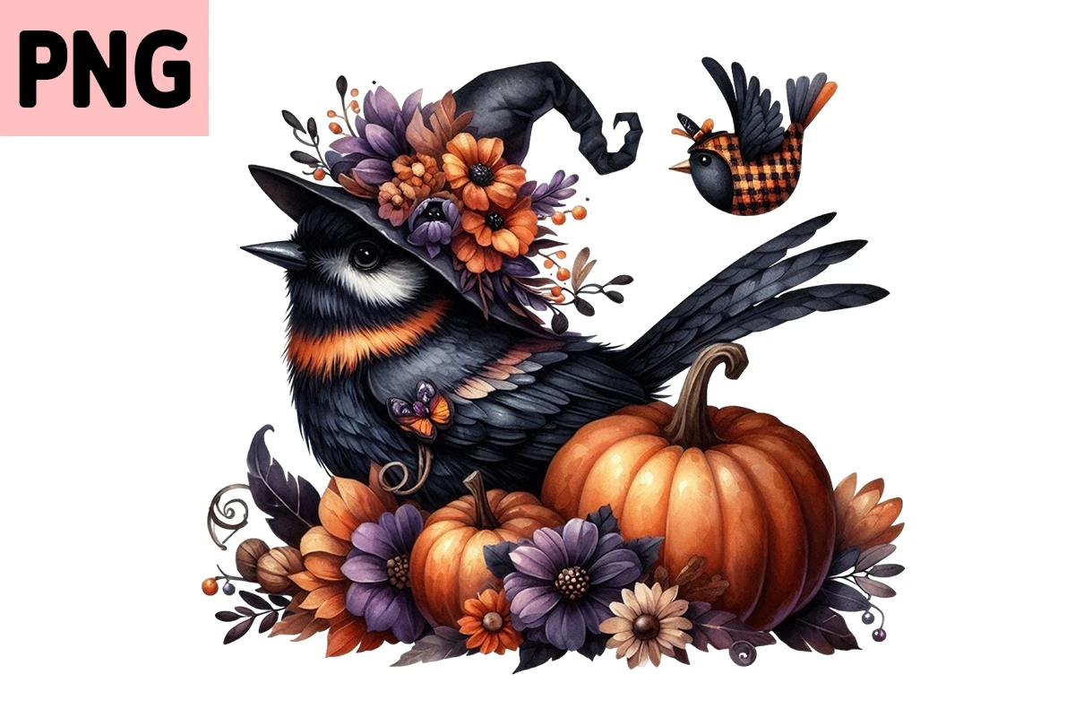 -Halloween Bird Gnome Flowers Crown with flowers-Clipart Sublimation Single Design File-