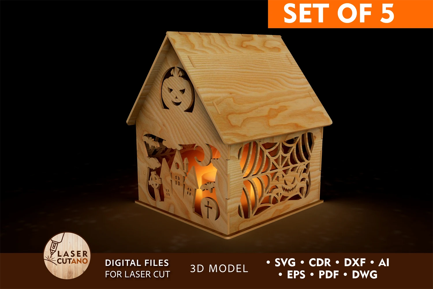 Candle Holder HALLOWEEN Digital multilayer layout files are specially prepared for the laser cut, CNC router machine and other cutting machines.