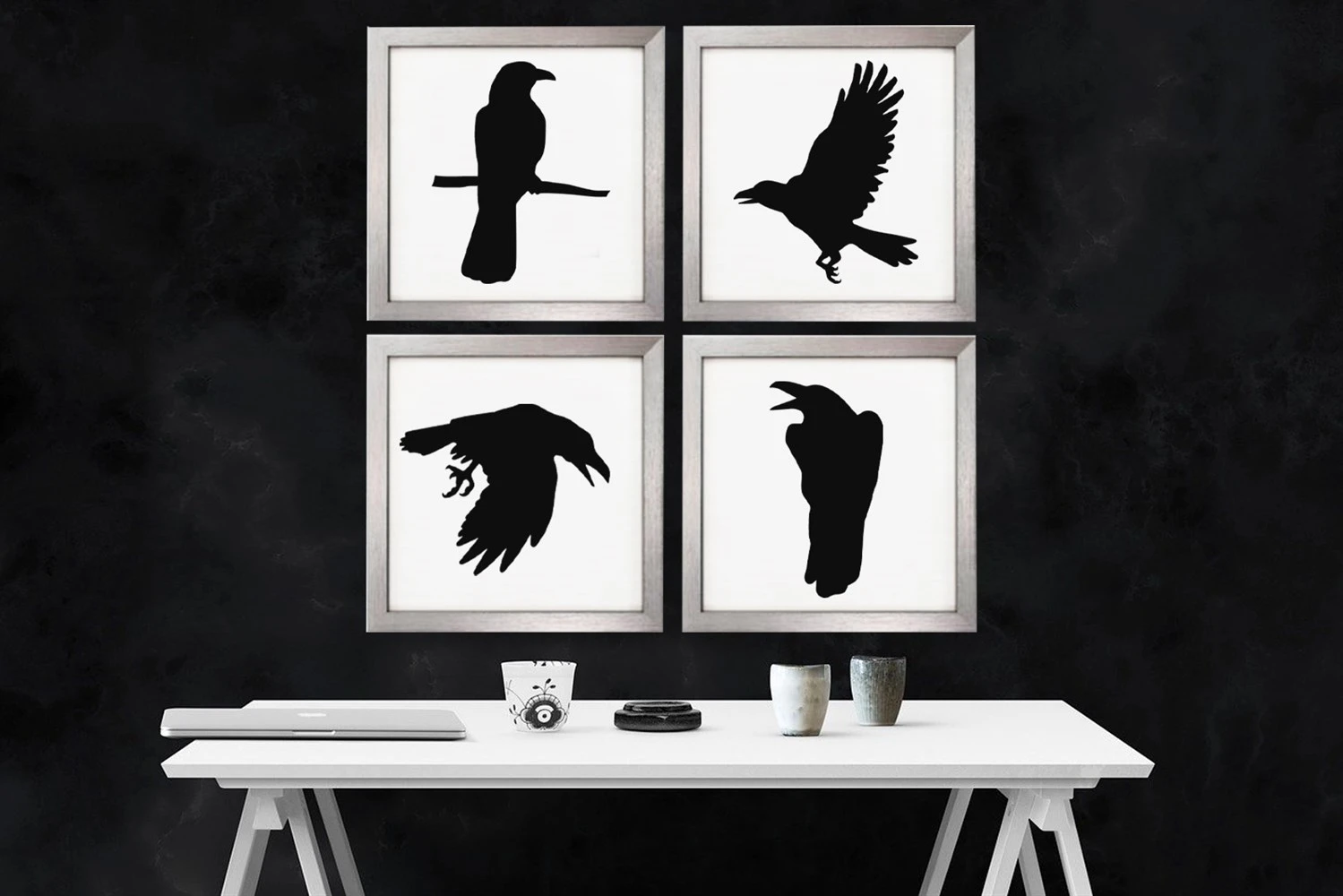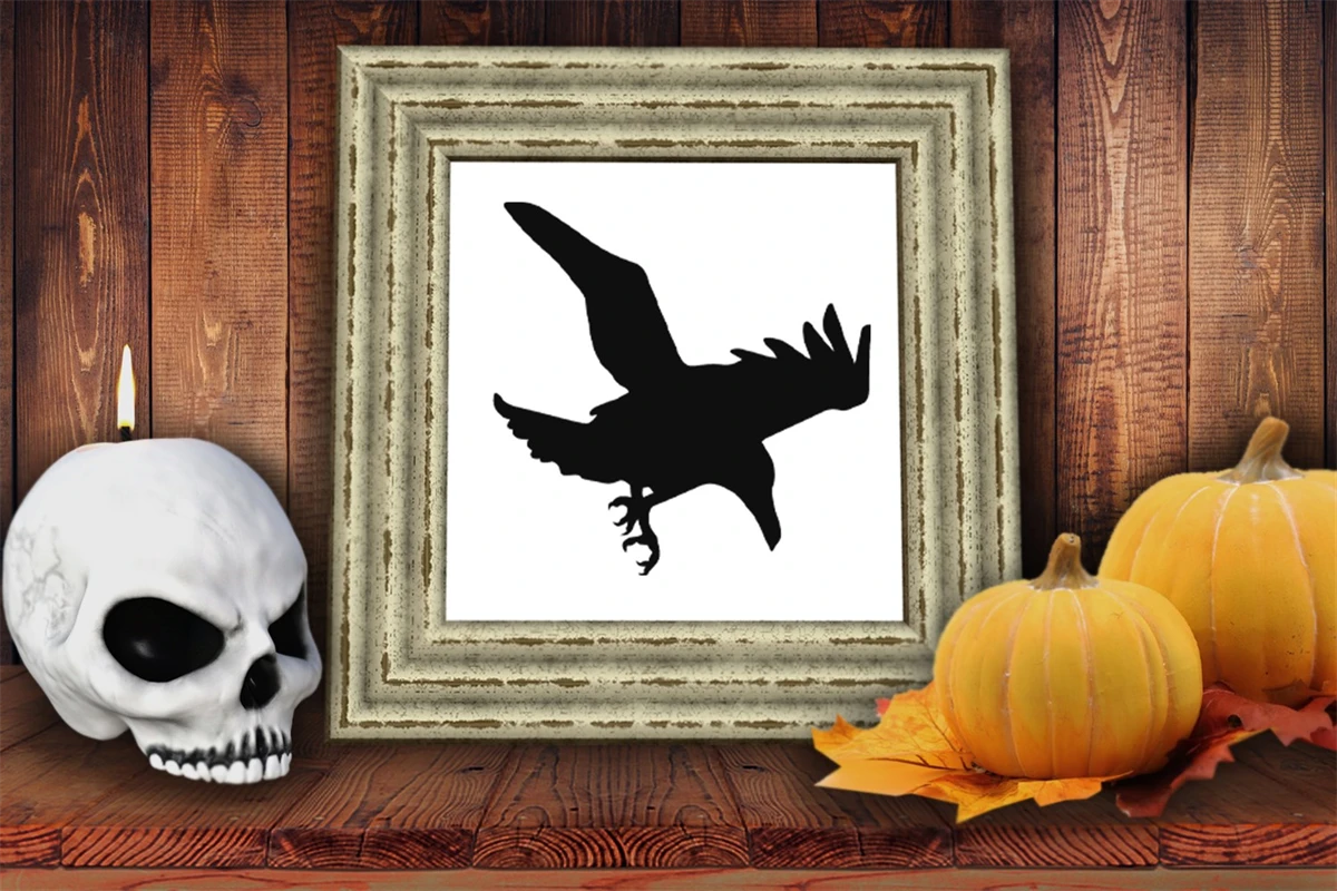 Halloween Crow SVG Cut Files for your creative DIY projects, and Home Decorations. Perfect for vinyl, personalized T-shirts, apparel, cups, stickers, card stock, and other DIY projects. Options are endless! The design comes in BLACK color which can be easily changed to your desired color.