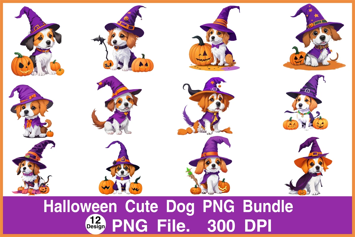 Halloween Cute Dog Clipart PNG Bundle