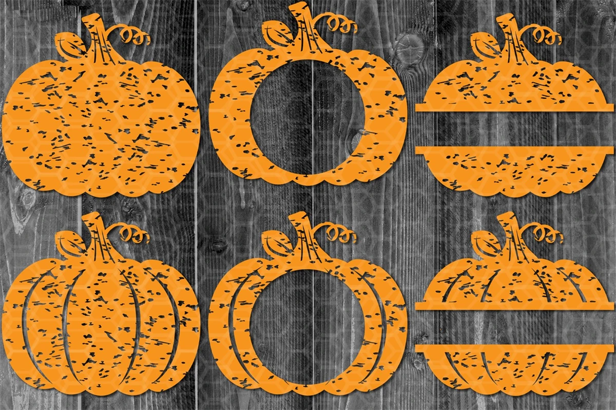 Halloween Distressed Pumpkins Monogram SVG Instant Digital Download for Creative DIY Projects, Vinyl Cut Files, Silhouette Clipart Design 6 Patterns. Perfect for vinyl, personalized T-shirts, apparel, cups, stickers, card stock, and other DIY projects. Options are endless!