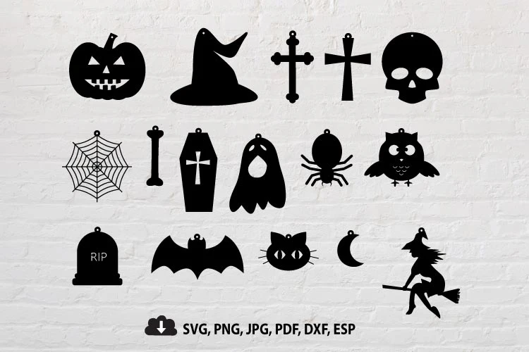 16 Halloween Earrings SVG, Pumpkin, Cross, Cat, Web, Spider, Bat, Witch, Ghost, Skull, Halloween Jewelry Template, Cut file, Cricut