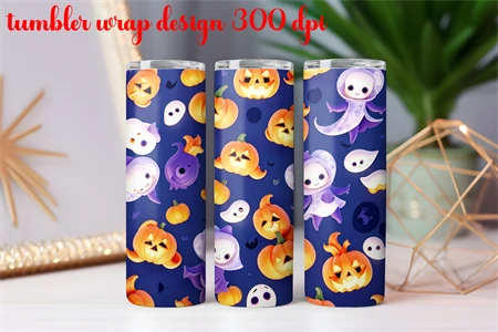 Halloween Ghost Seamless Tumbler Wrap Designs