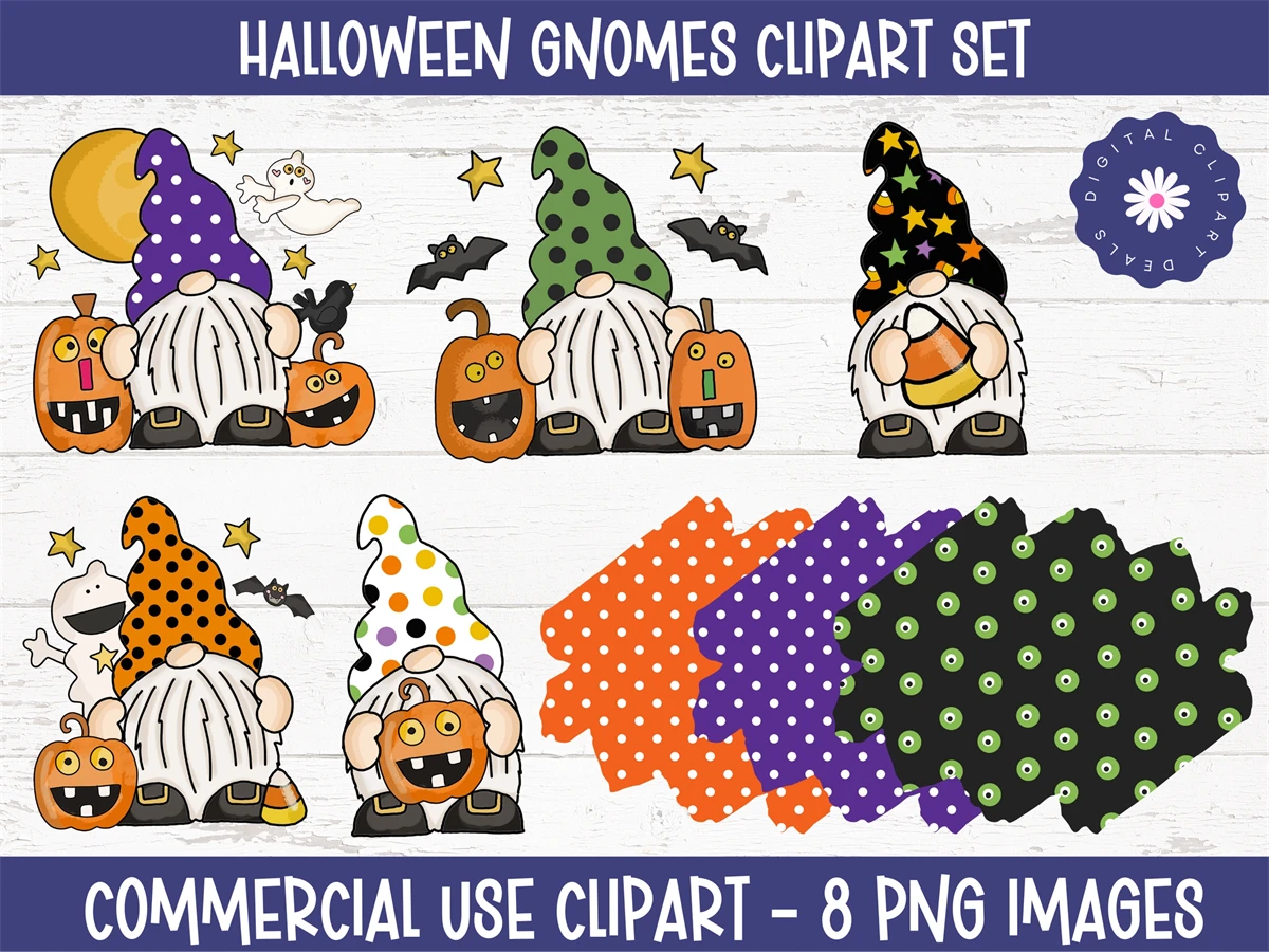 Introducing our "Halloween Gnomes Clipart Set - 8 Spooky PNG Images"