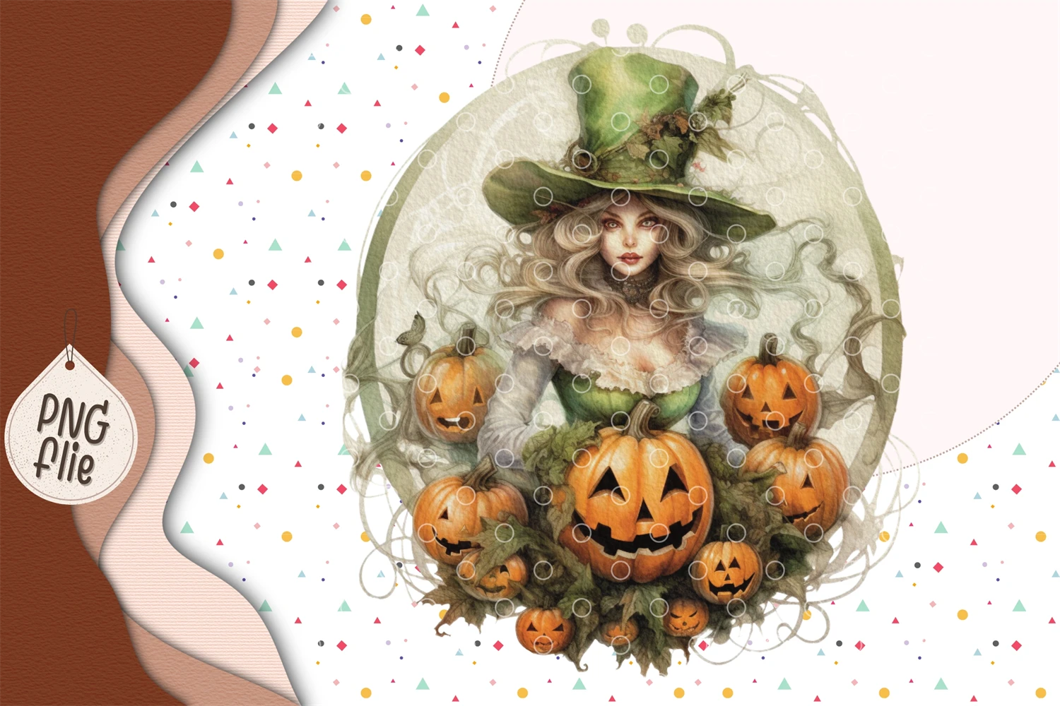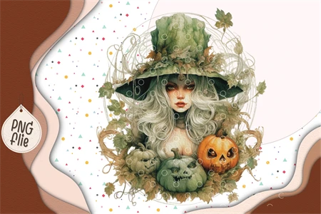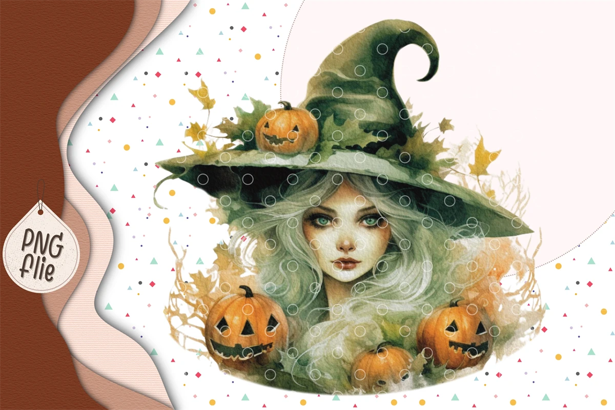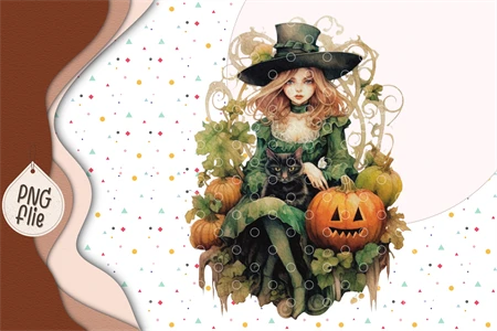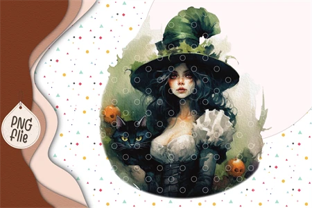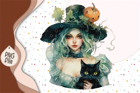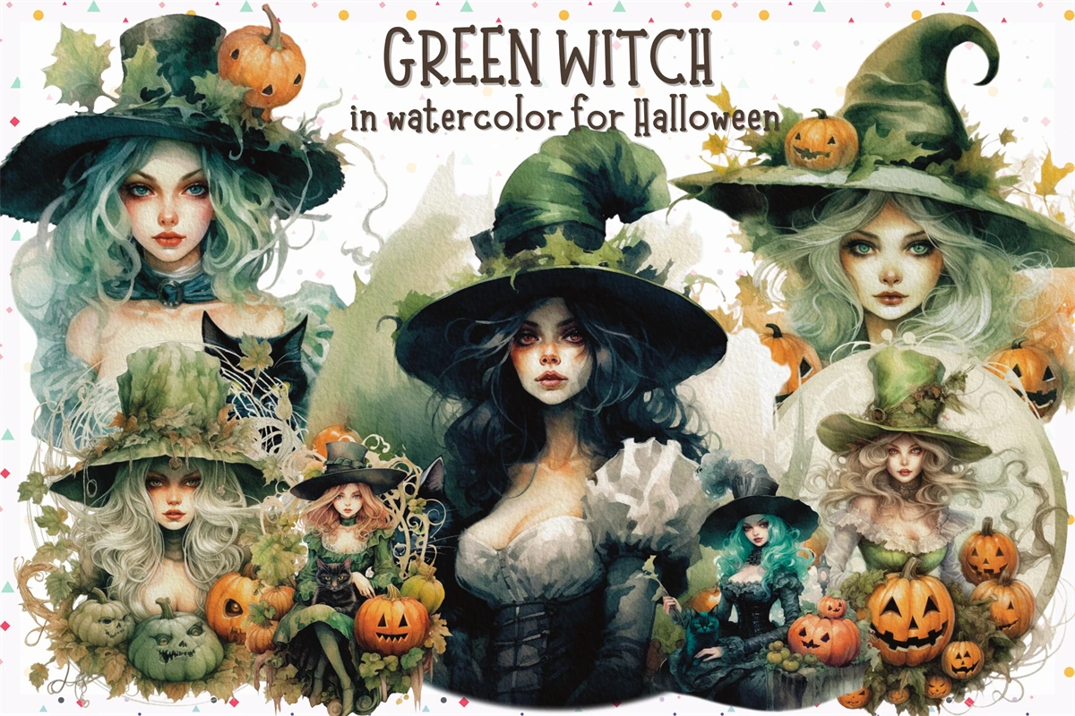 Halloween Green Witch in Watercolor