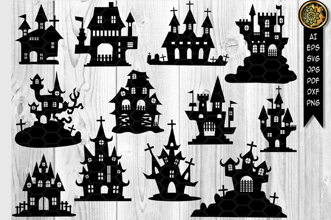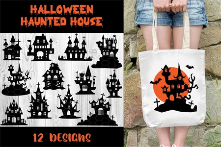 Halloween Haunted House SVG Cut Files for your creative DIY projects, and Home Decorations. Perfect for vinyl, personalized T-shirts, apparel, cups, stickers, card stock, and other DIY projects. Options are endless! The design comes in BLACK color which can be easily changed to your desired color.