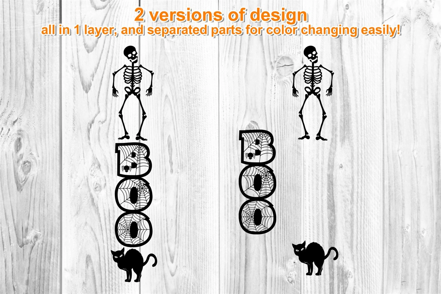 All designs come in BLACK color which can be easily changed to your desired color. And all come in 2 versions, all in 1 layer, and separated layers for changing color more easily. You can choose with any color to match your porch sign.