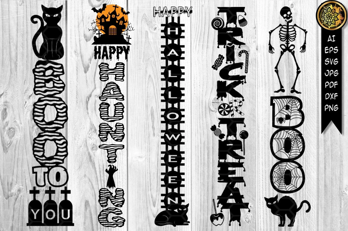 Halloween Home Porch Sign set 3 SVG Cut Files for your creative DIY projects and Home Decorations. Perfect for vinyl, personalized T-shirts, apparel, cups, stickers, card stock, and other DIY projects. Options are endless!