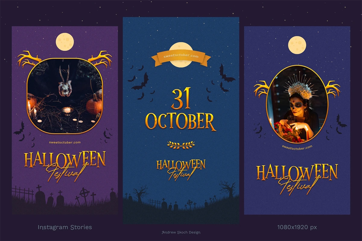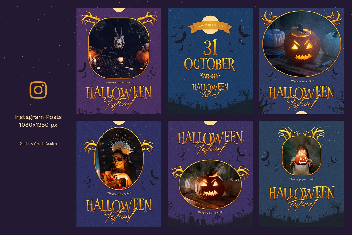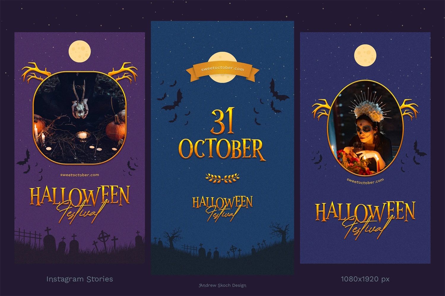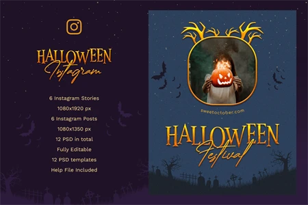 Be ready for Halloween with this set of 12 PSD templates. Posts and stories in dark and spooky style for your Halloween social media campaigns. Create Instagram stories within couple minutes! Also, suite for Facebook! Edit texts and put your photos. It's so easy!