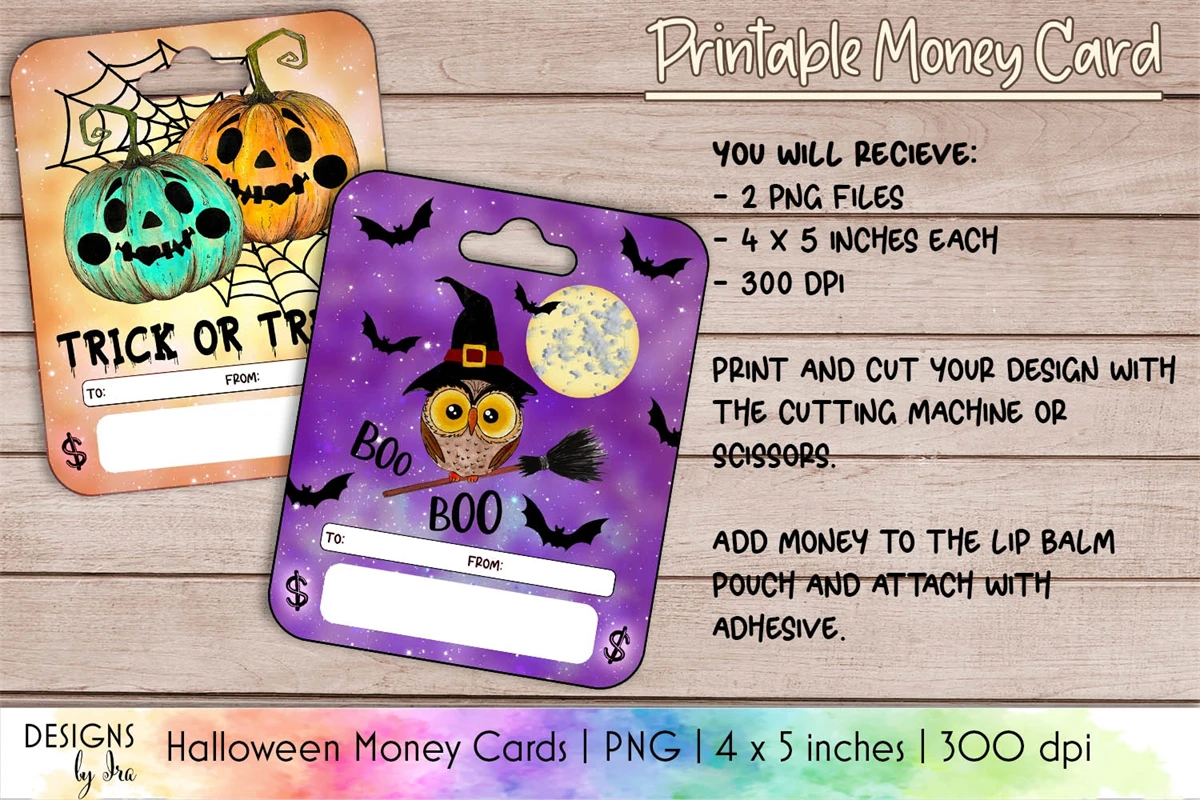 Put money in the lip balm pouch and attach to the card with the adhesive.