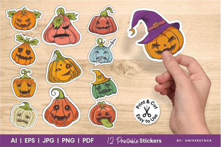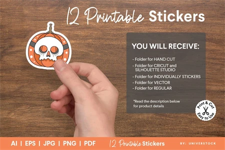 - 12 JPG files including all stickers individually (6"x6"), with contours and cut lines