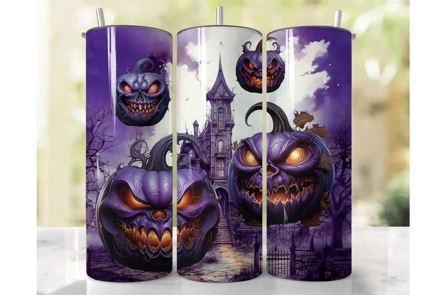 20 oz tumbler wrap Halloween pumpkins.