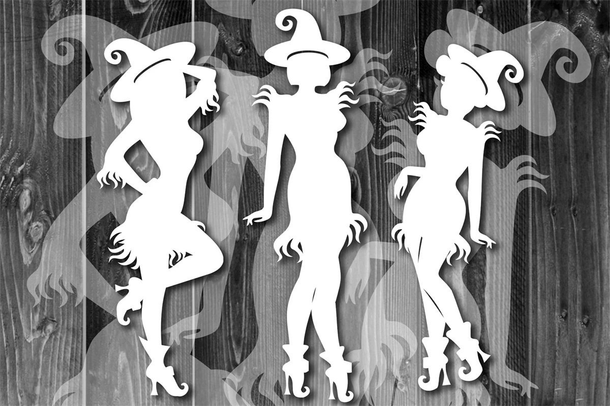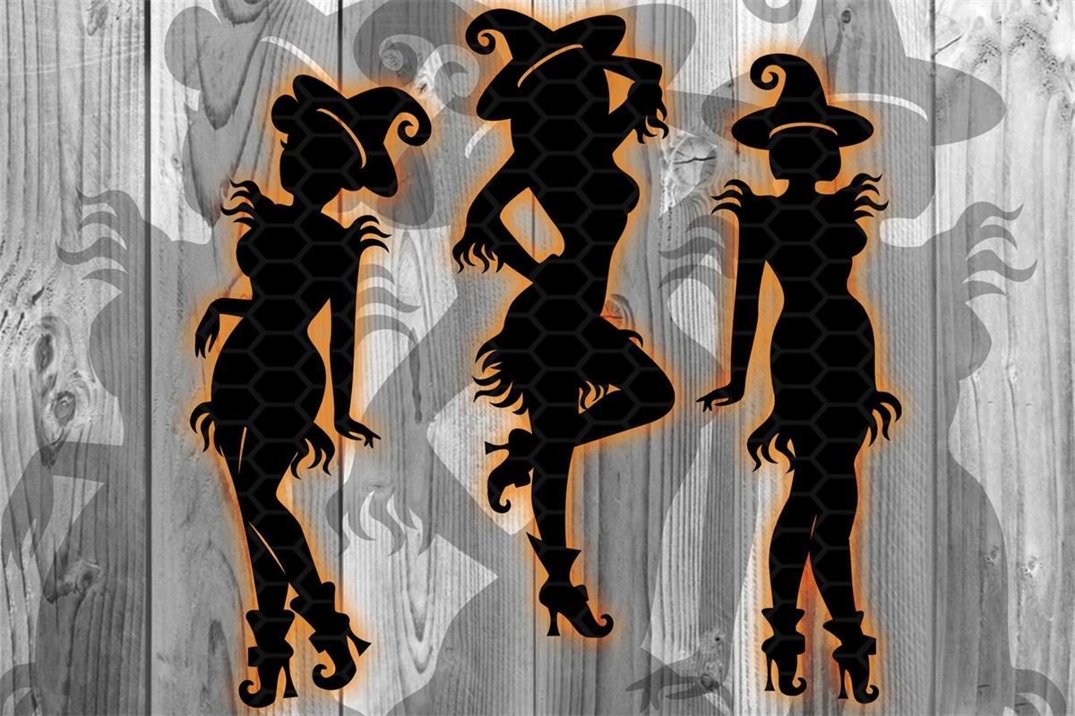 Set of 3 Halloween Witches SVG Clip Art Cut Files for your creative DIY projects, and Home Decorations. Modern Halloween witch in new design with sexy poses.