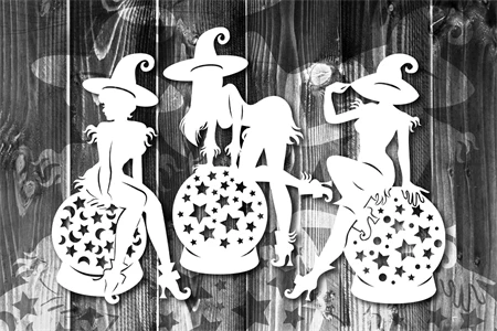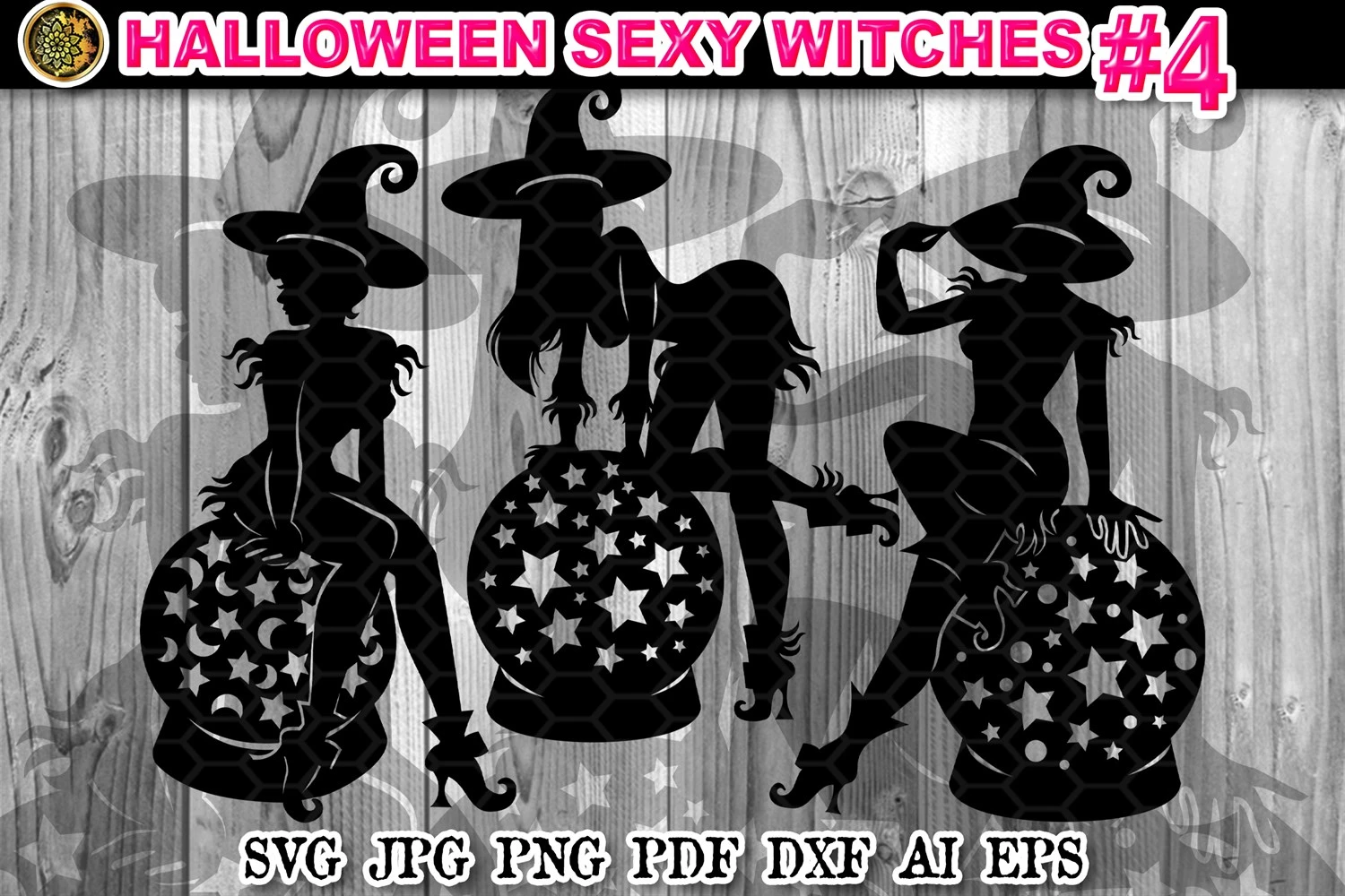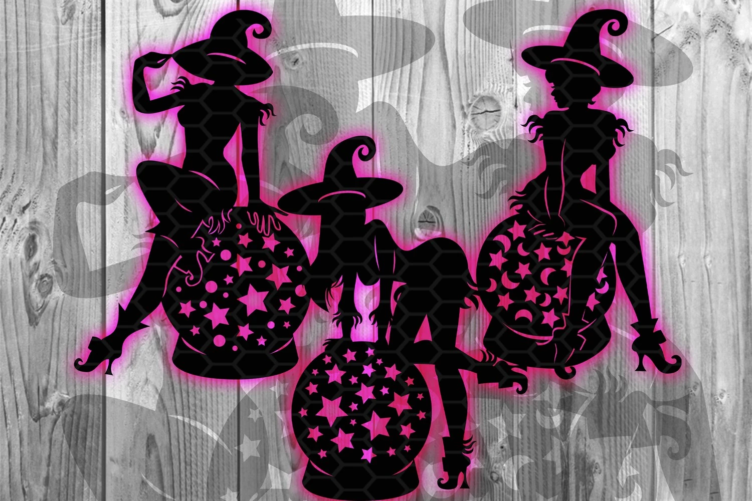 Set of 3 Halloween Witches with a magic balls SVG Clip Art Cut Files for your creative DIY projects, and Home Decorations. Modern Halloween witch in new design with sexy poses.