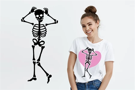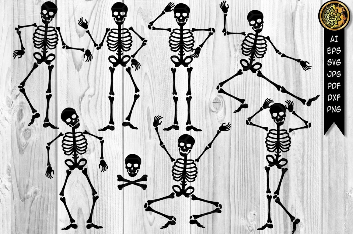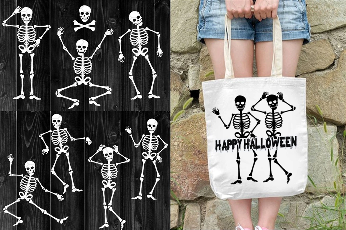 Halloween Skeleton Silhouette SVG Cut Files for your creative DIY projects, and Home Decorations. Perfect for vinyl, personalized T-shirts, apparel, cups, stickers, card stock, and other DIY projects. Options are endless! The design comes in BLACK color which can be easily changed to your desired color.