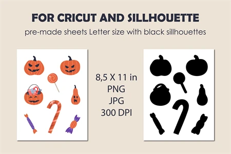 2 sheets for Cricut Machines and Silhouette Studio for printing and cutting with black silhouettes PNG, JPG, 8,5 x 11 In (8 files)