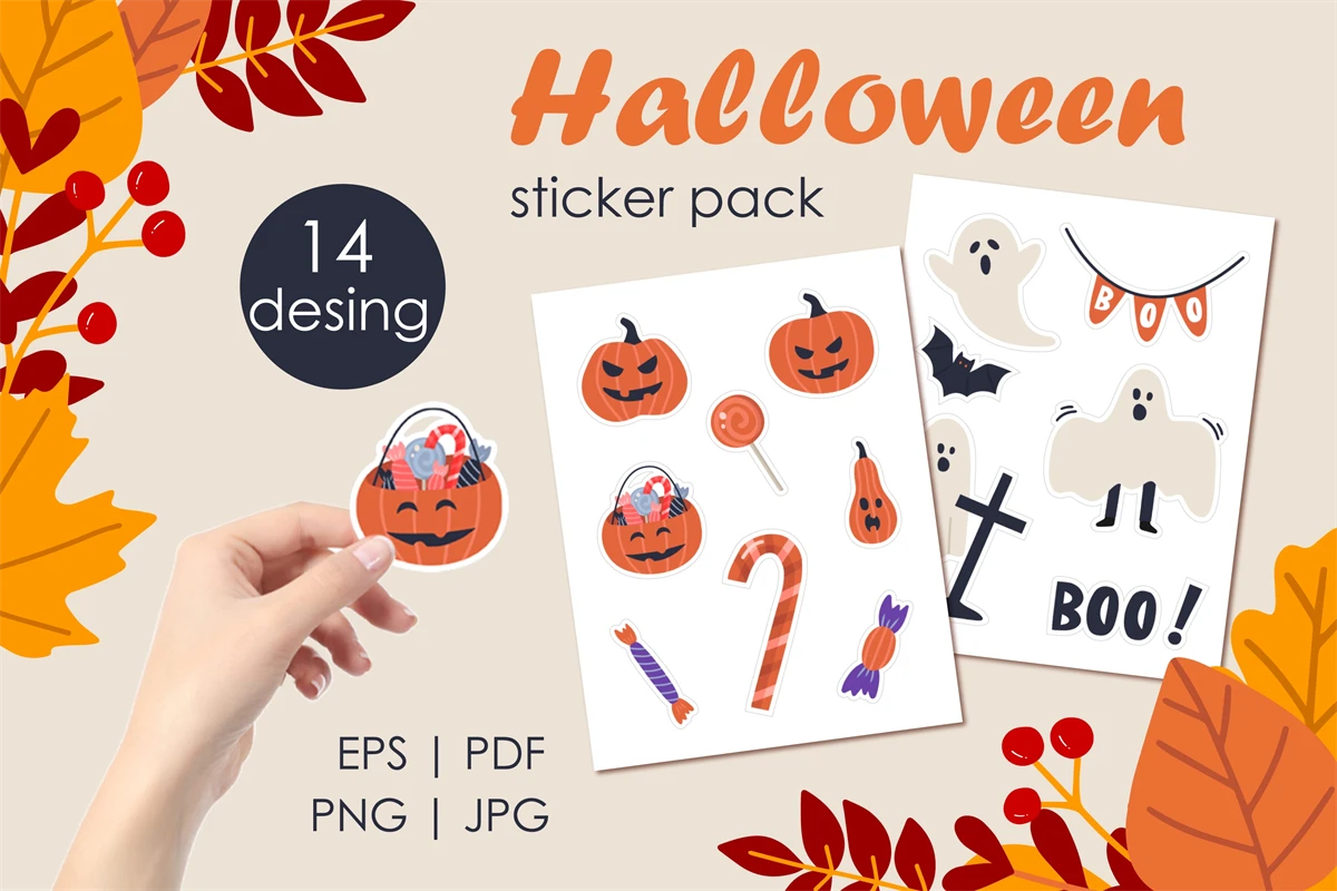 Hand drawn vector Halloween clipart EPS and sticker pack for Cricut Machines and Silhouette Studio.