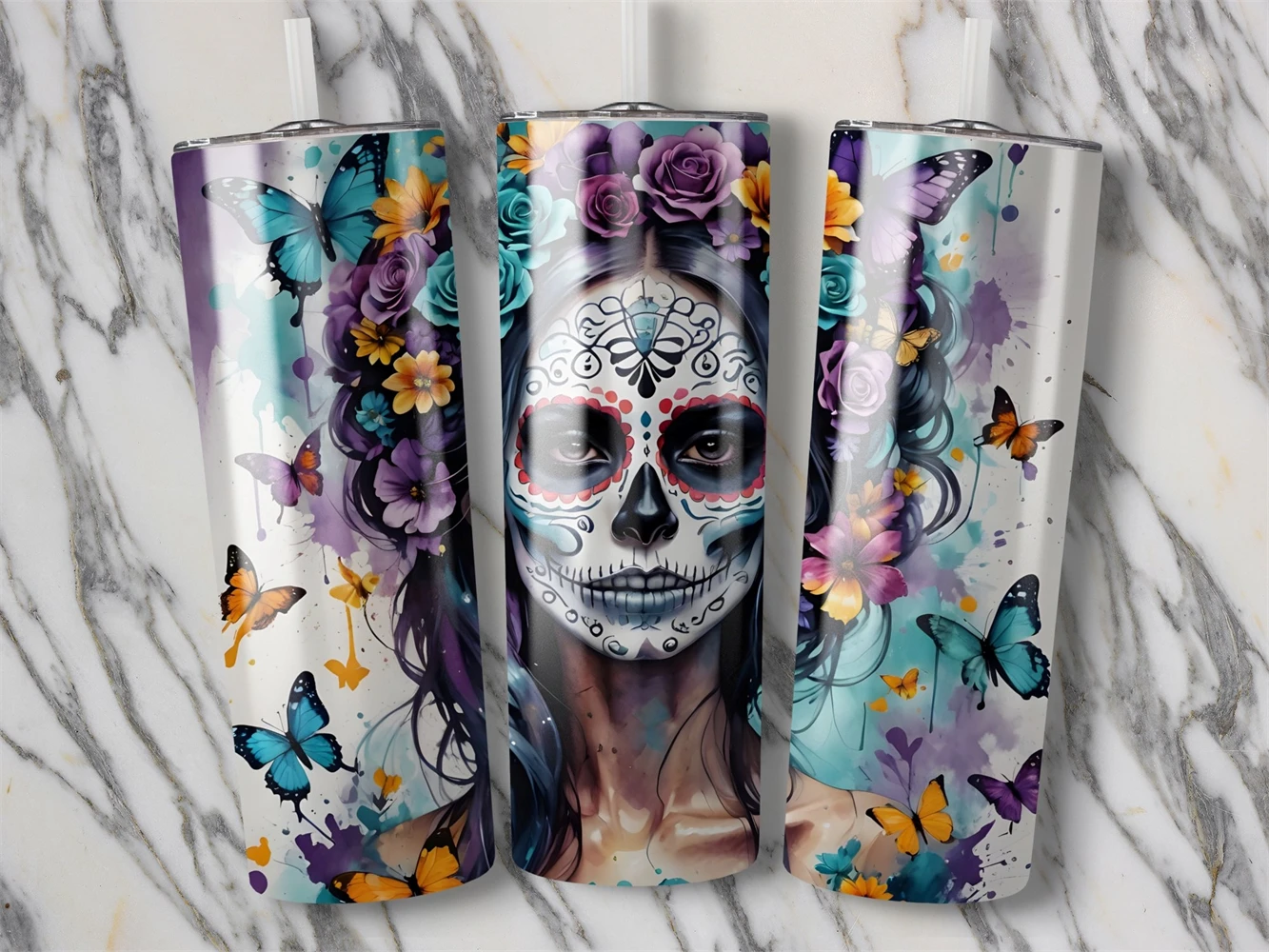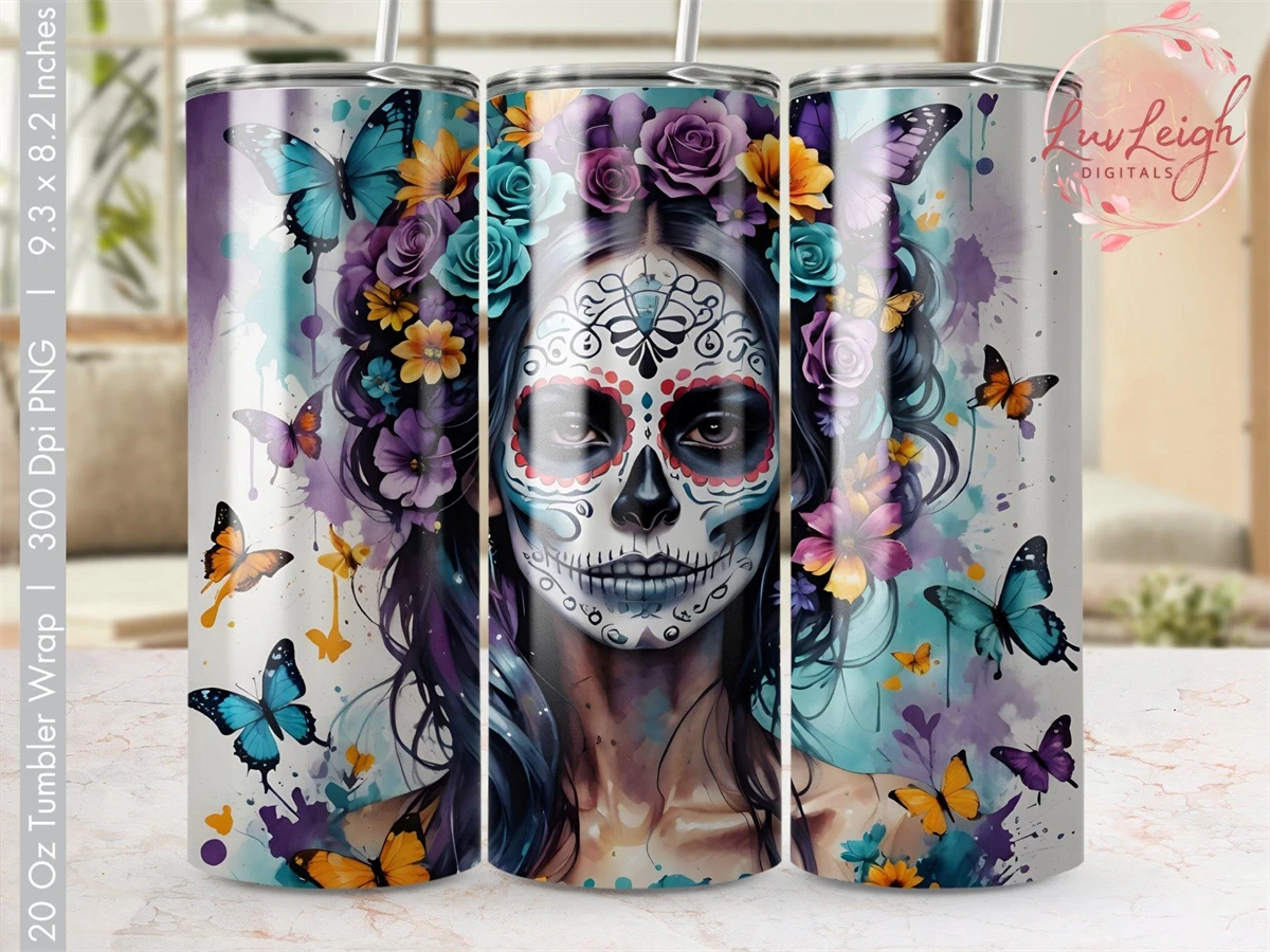Halloween Sugar Skull Tumbler sublimation wrap