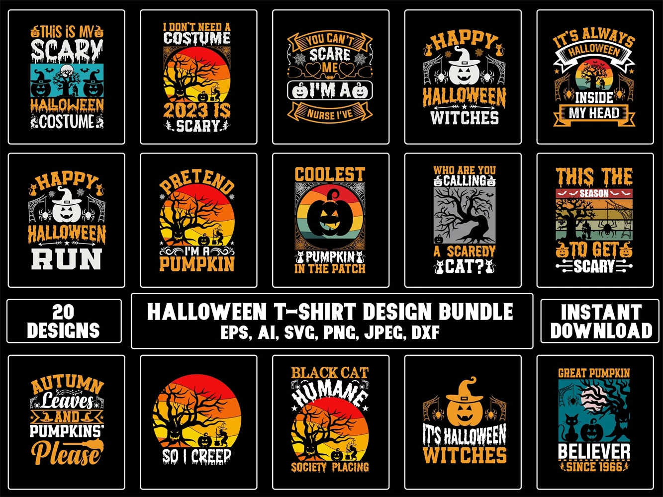 Halloween T-Shirt Design Bundle FILE INCLUDED: