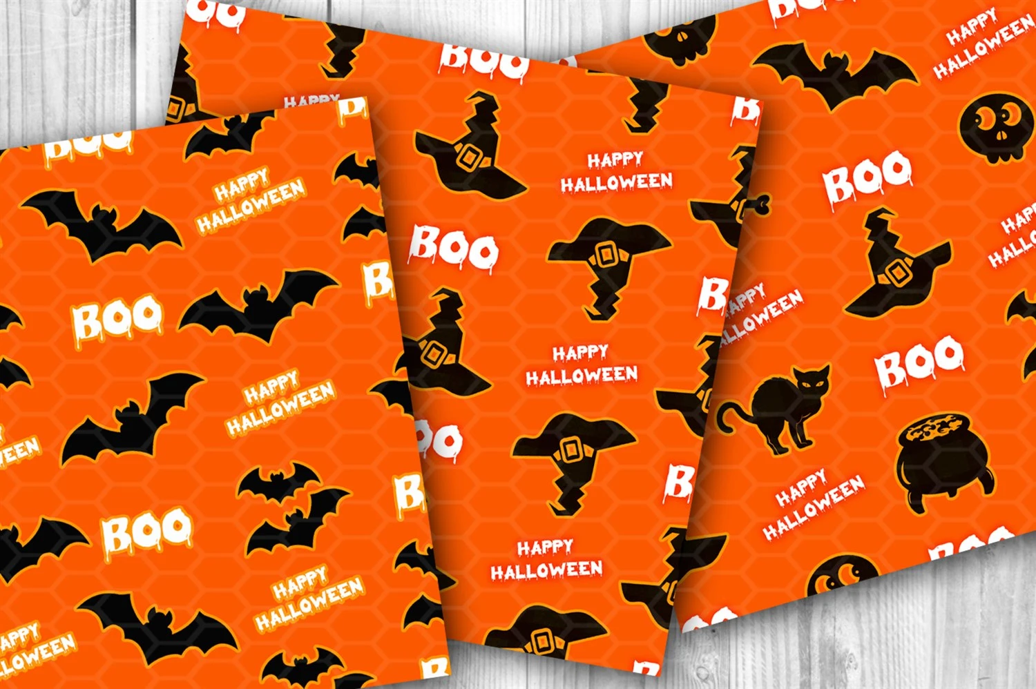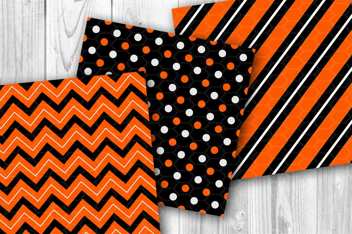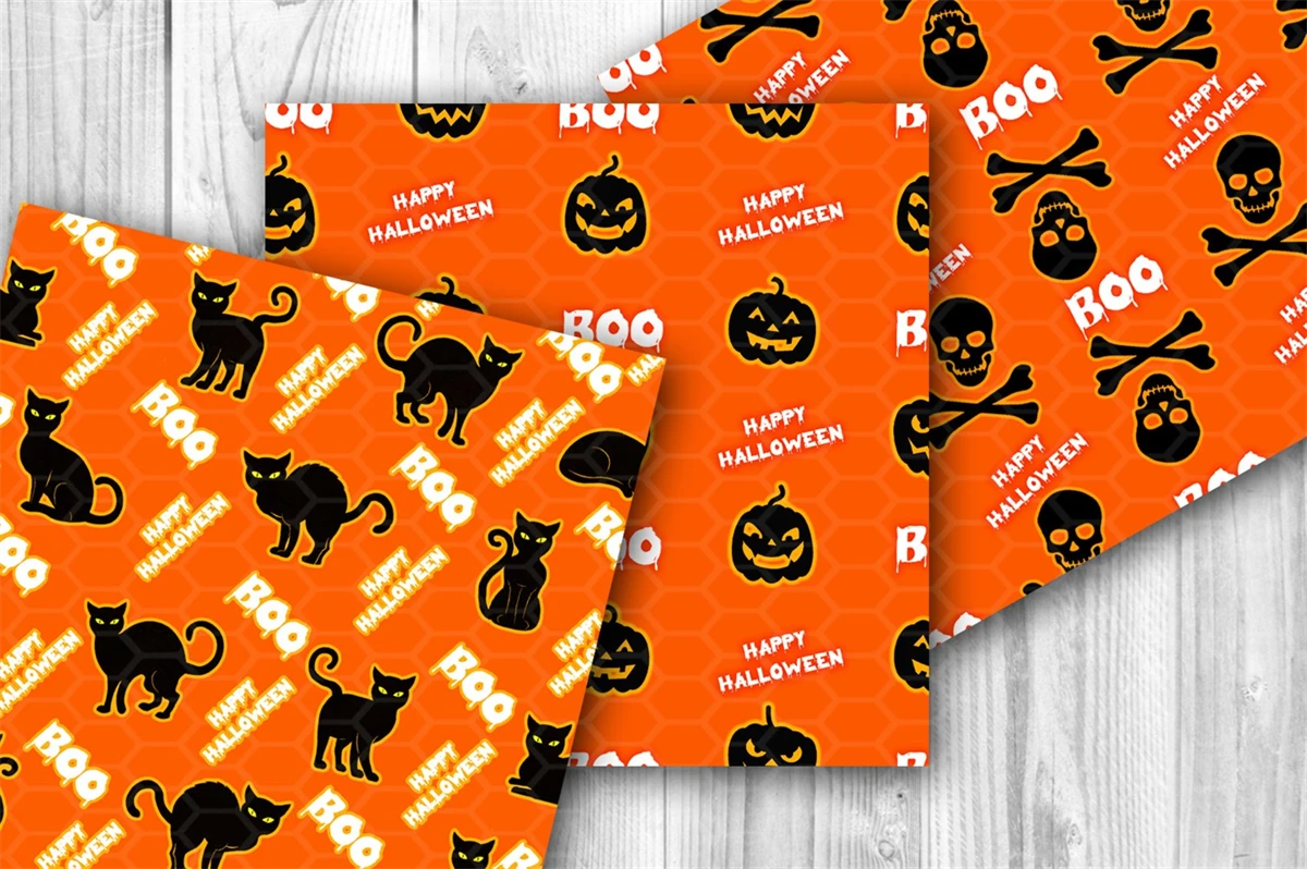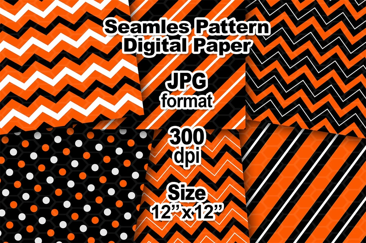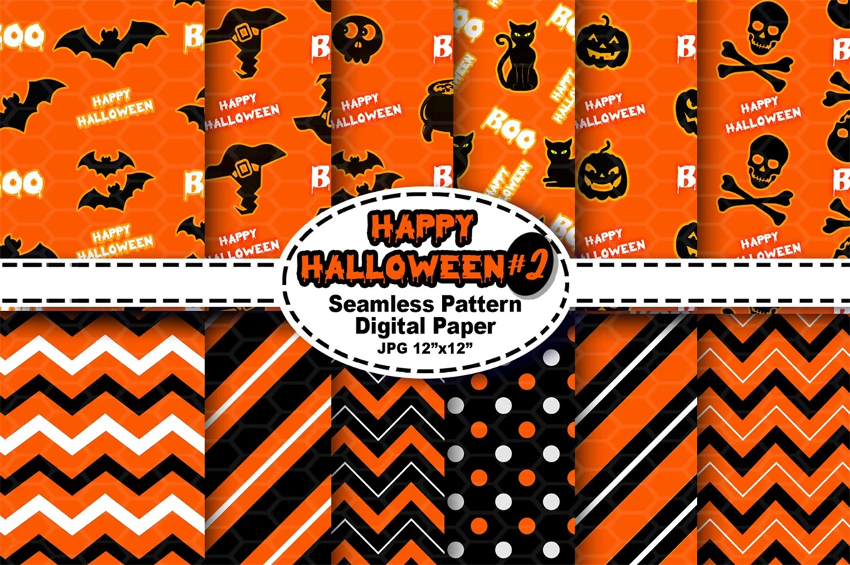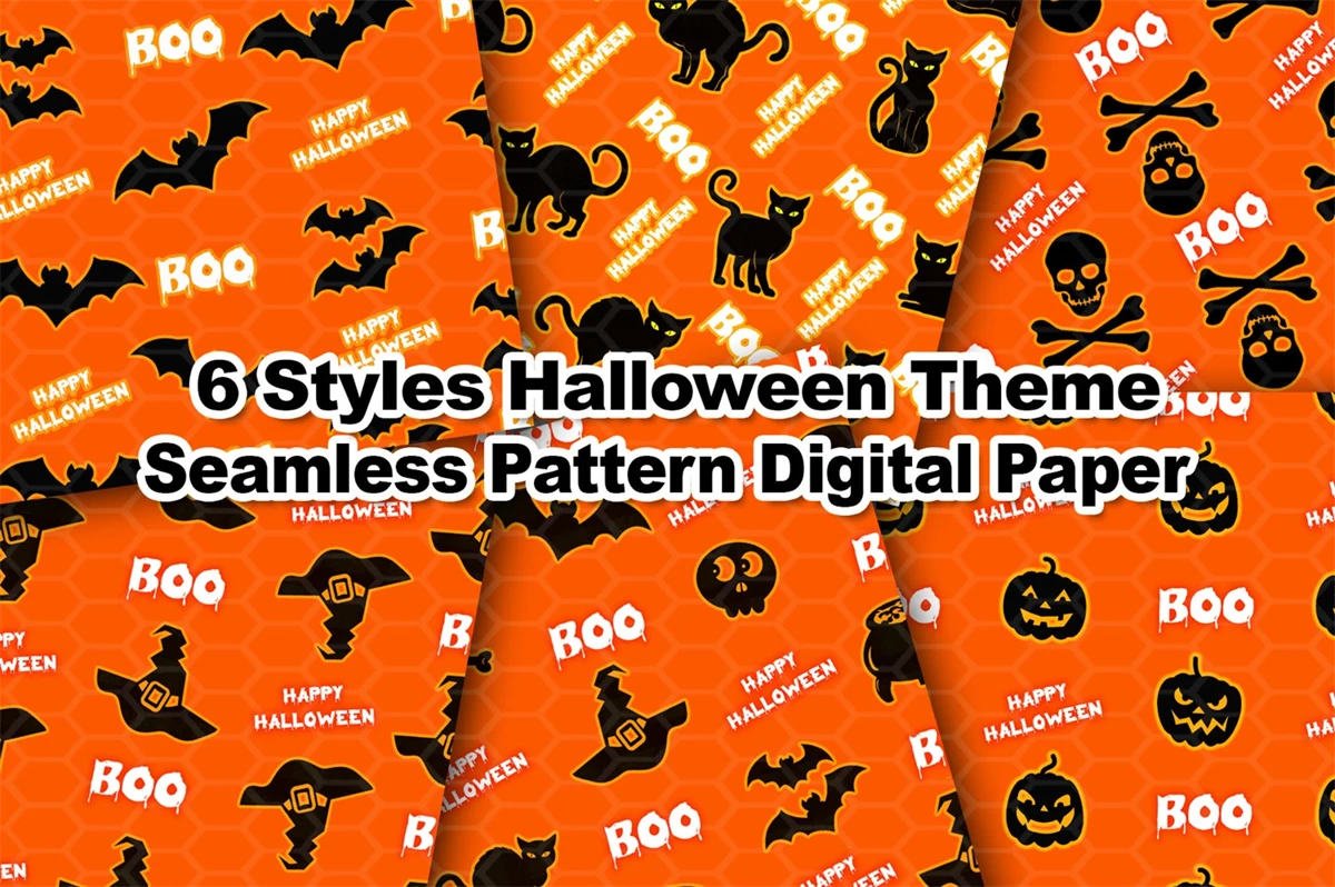Orange and Black Halloween Theme Seamless Pattern Digital Paper Set 2