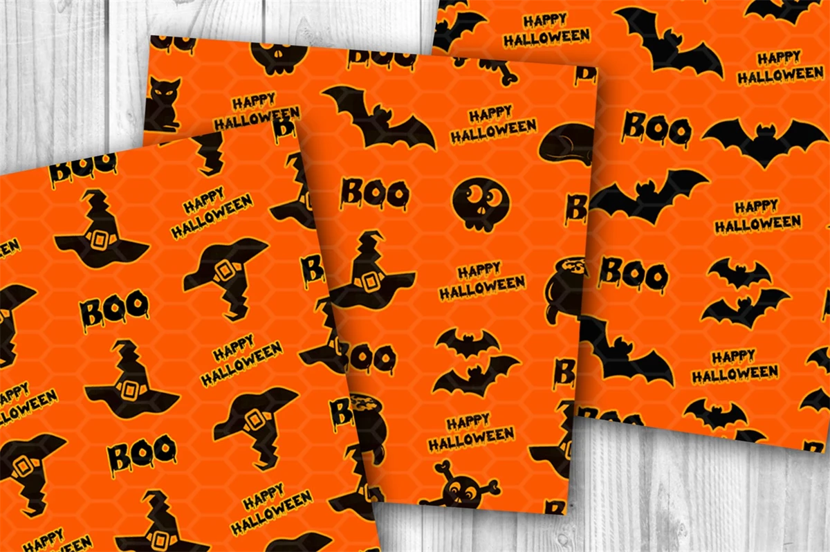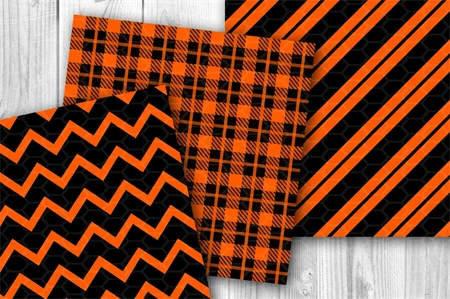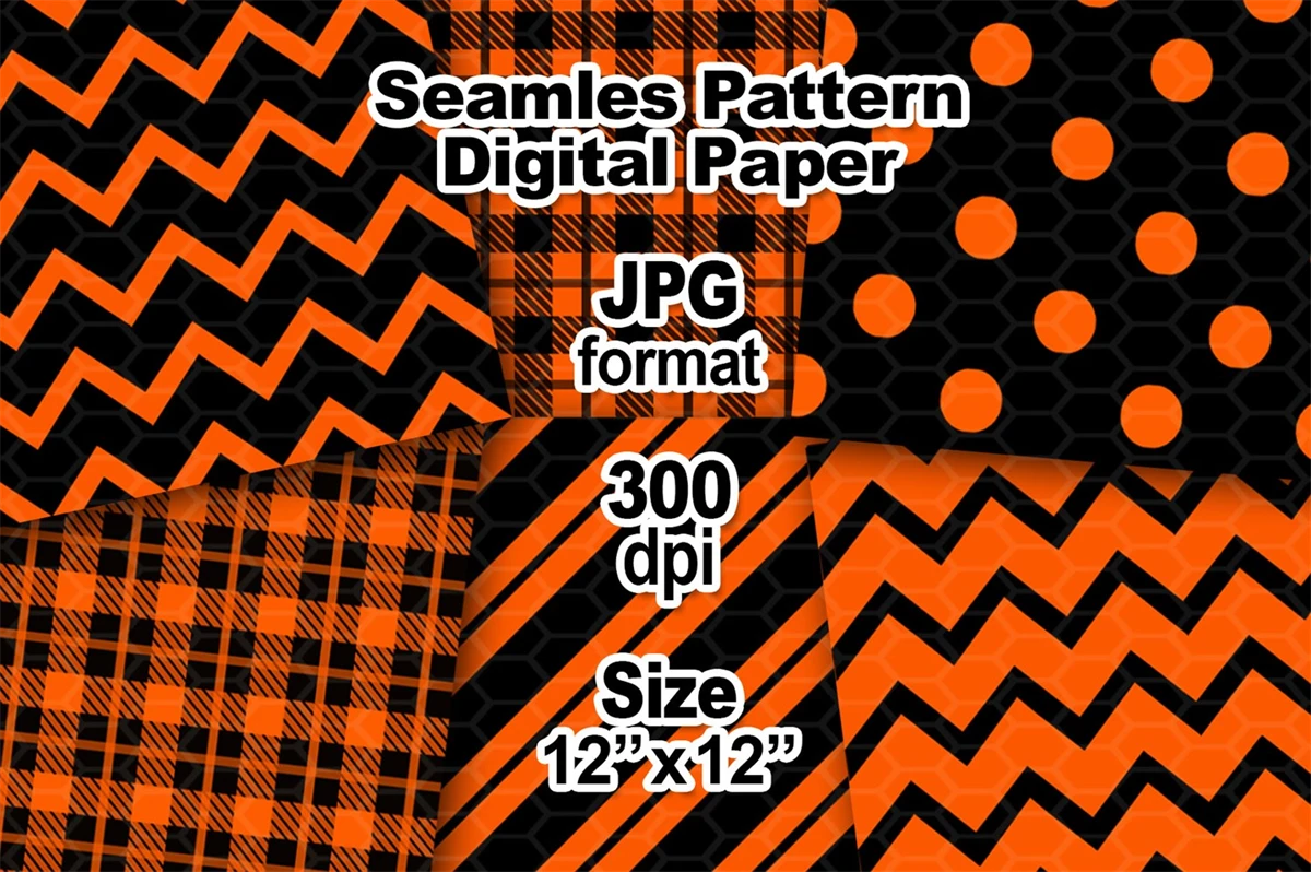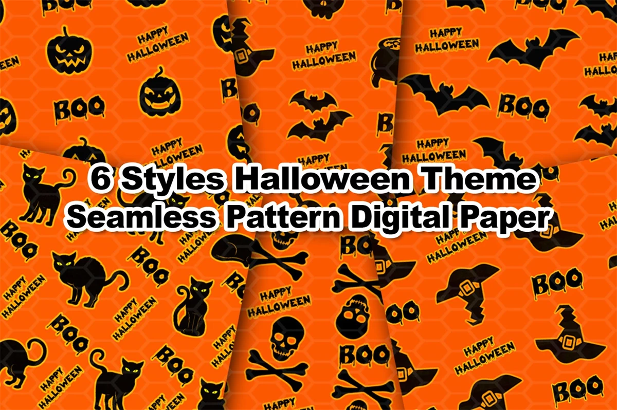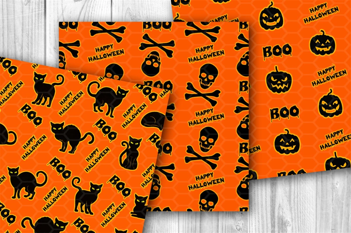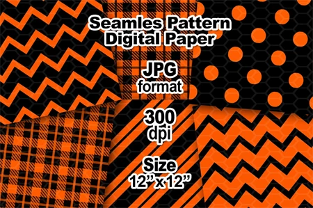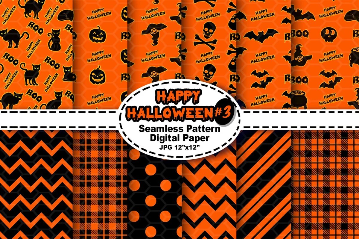 Orange and Black Halloween Theme Seamless Pattern Digital Paper Set 3
