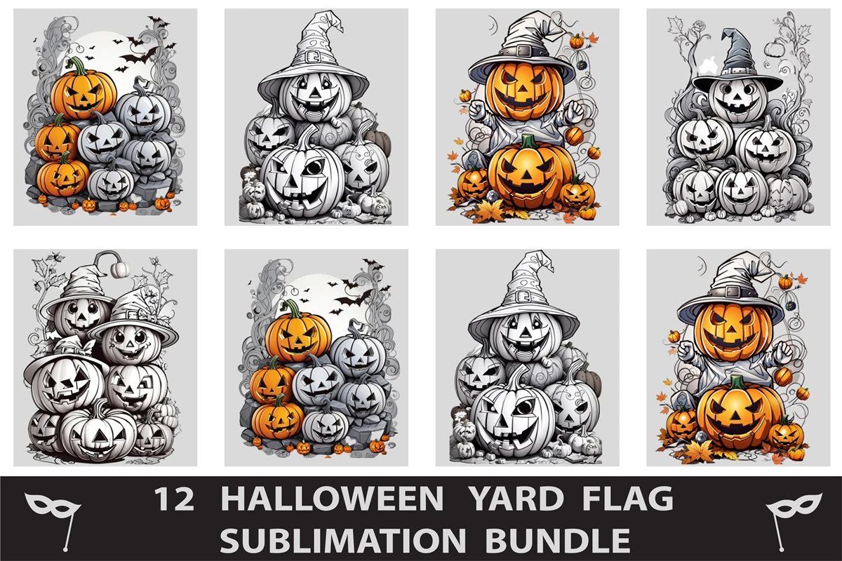 Halloween Garden Flag Sublimation Bundle / Halloween Yard Flag Sublimation / 12 PNG Bundle