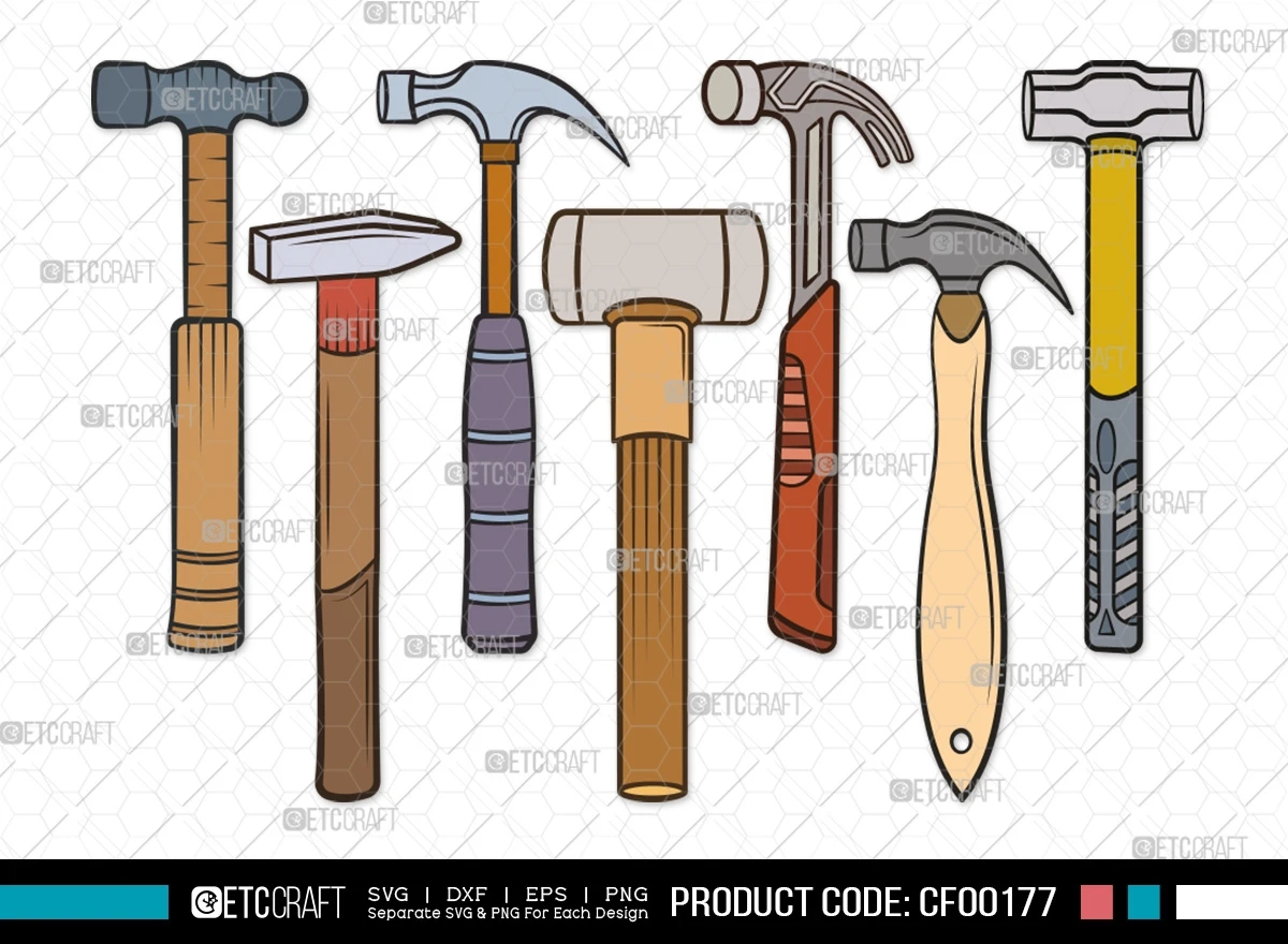 Elevate your crafting and DIY projects with our Hammer Clipart Thor Black Claw Hand Tool SVG Cut File Bundle. This digital collection presents meticulously designed SVG, DXF, EPS, and PNG files, showcasing a variety of versatile and detailed hammer clipart designs. Whether you're a carpenter, DIY enthusiast, or craft lover, this bundle is the perfect addition to your creative toolkit.