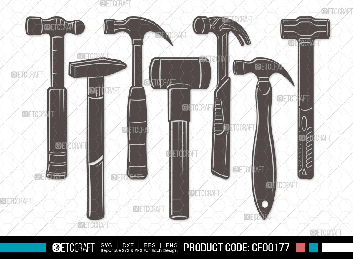 Elevate your crafting and DIY projects with our Hammer Silhouette Thor Black Claw Hand Tool SVG Cut File Bundle. This digital collection showcases meticulously designed SVG, DXF, EPS, and PNG files featuring a variety of stylish and versatile hammer silhouettes. Whether you're a carpenter, DIY enthusiast, or craft lover, this bundle is the perfect addition to your creative toolkit.