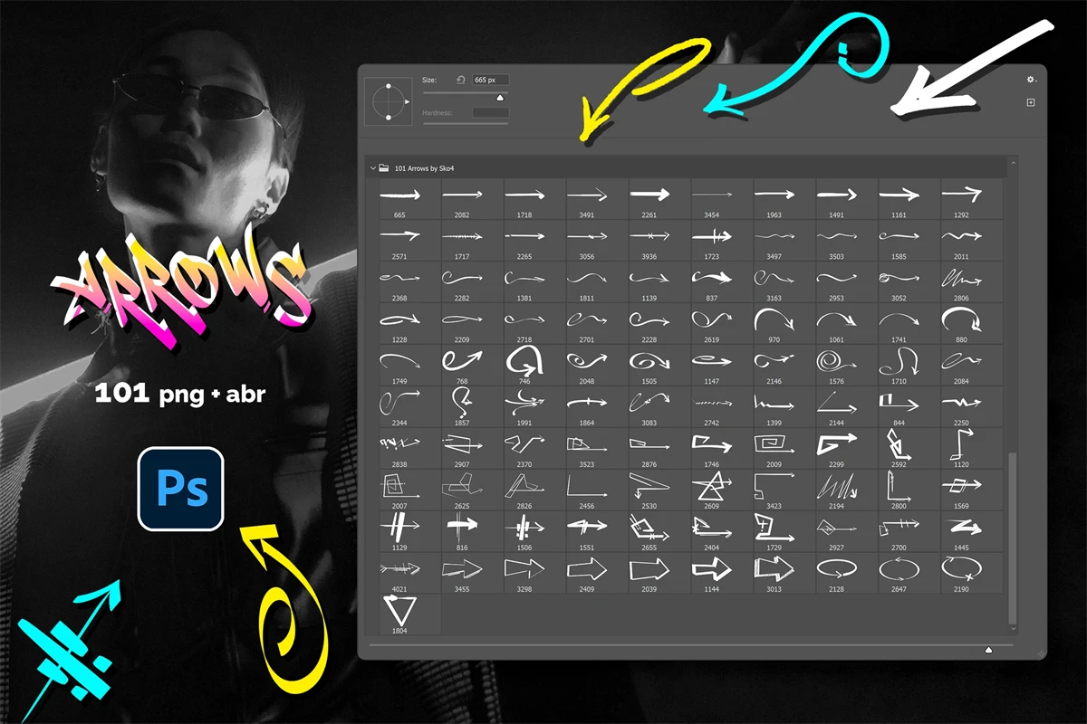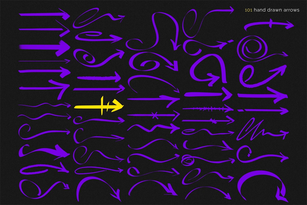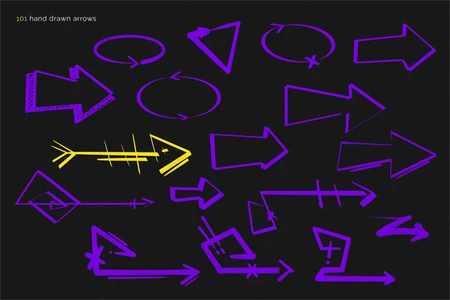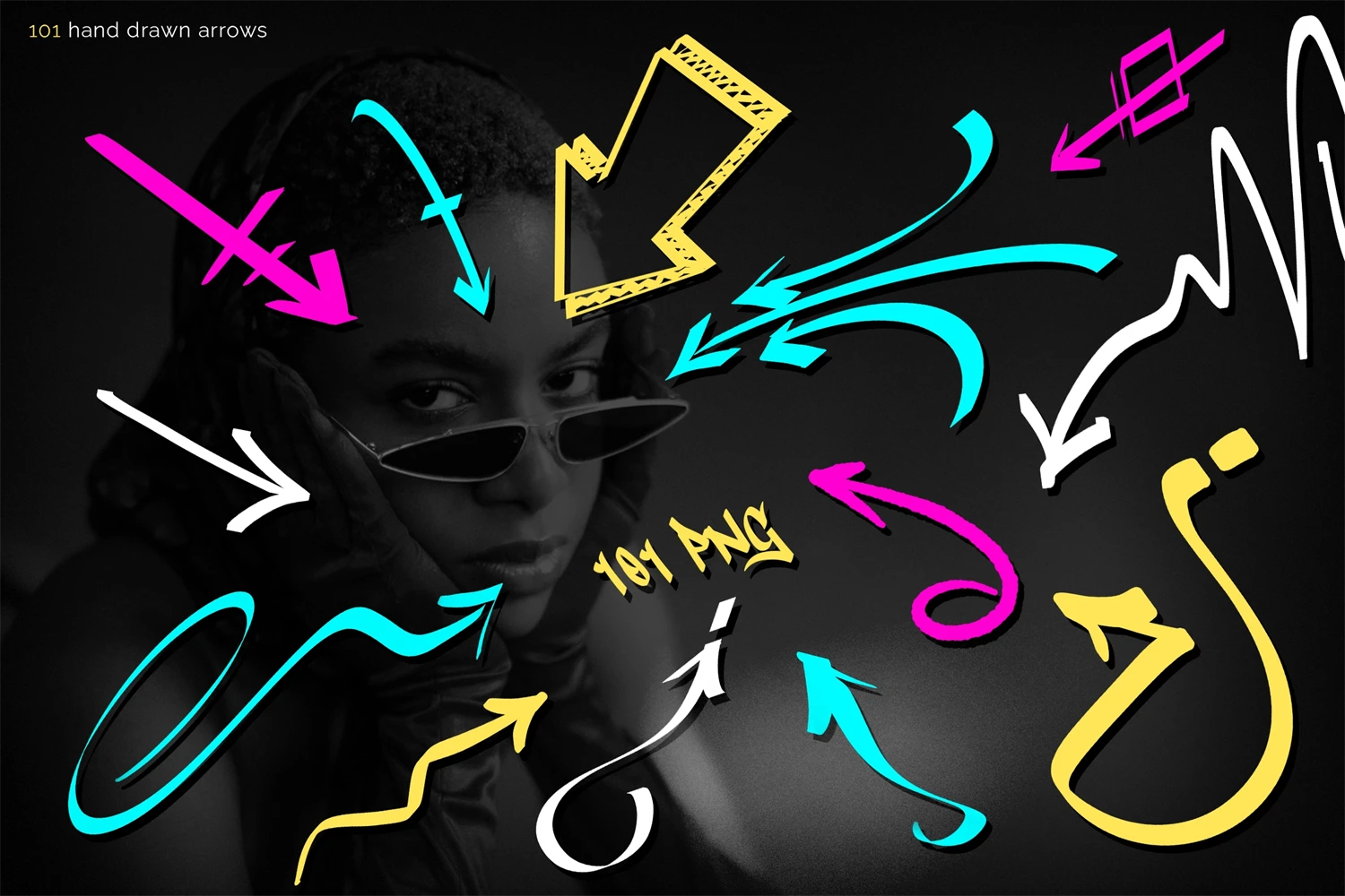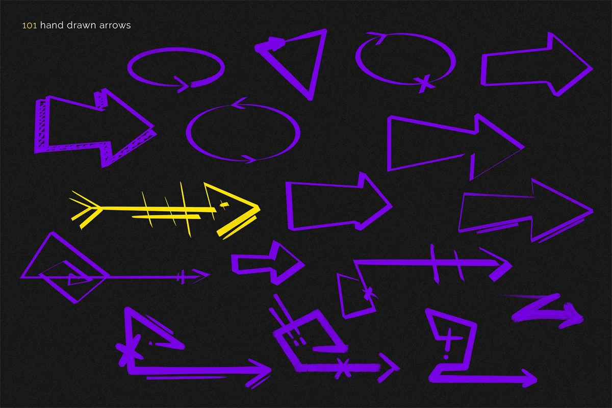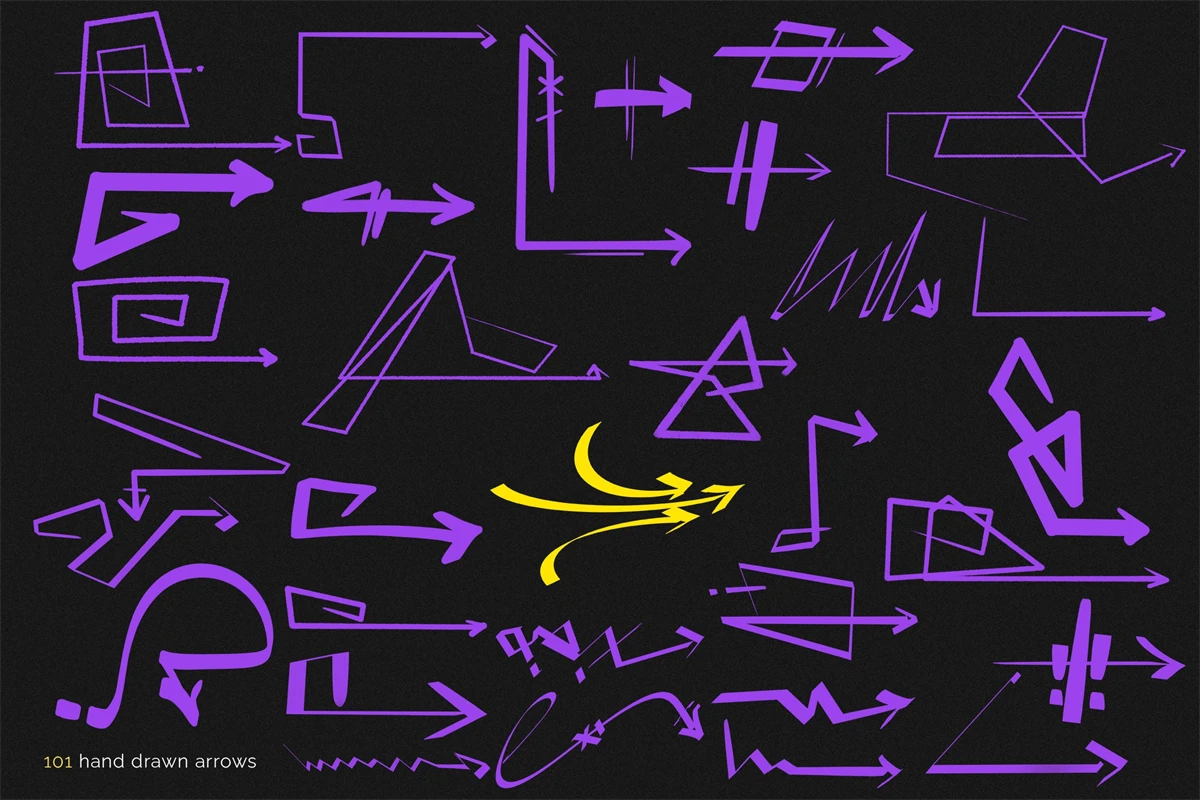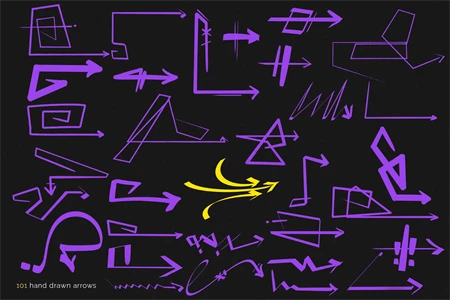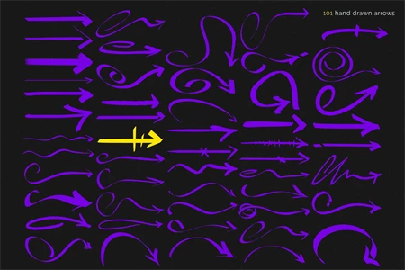 High quality and creative hand drawn arrows for your designs. Use .PNG files in any application. Use brush stamps in Adobe Photoshop. Creative arrows, arrows with white filling and black outlines, black arrows and decorative elements for your creative design ideas. Good for ads design, social media marketing design, infographics and more!