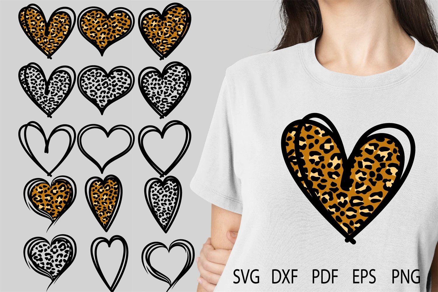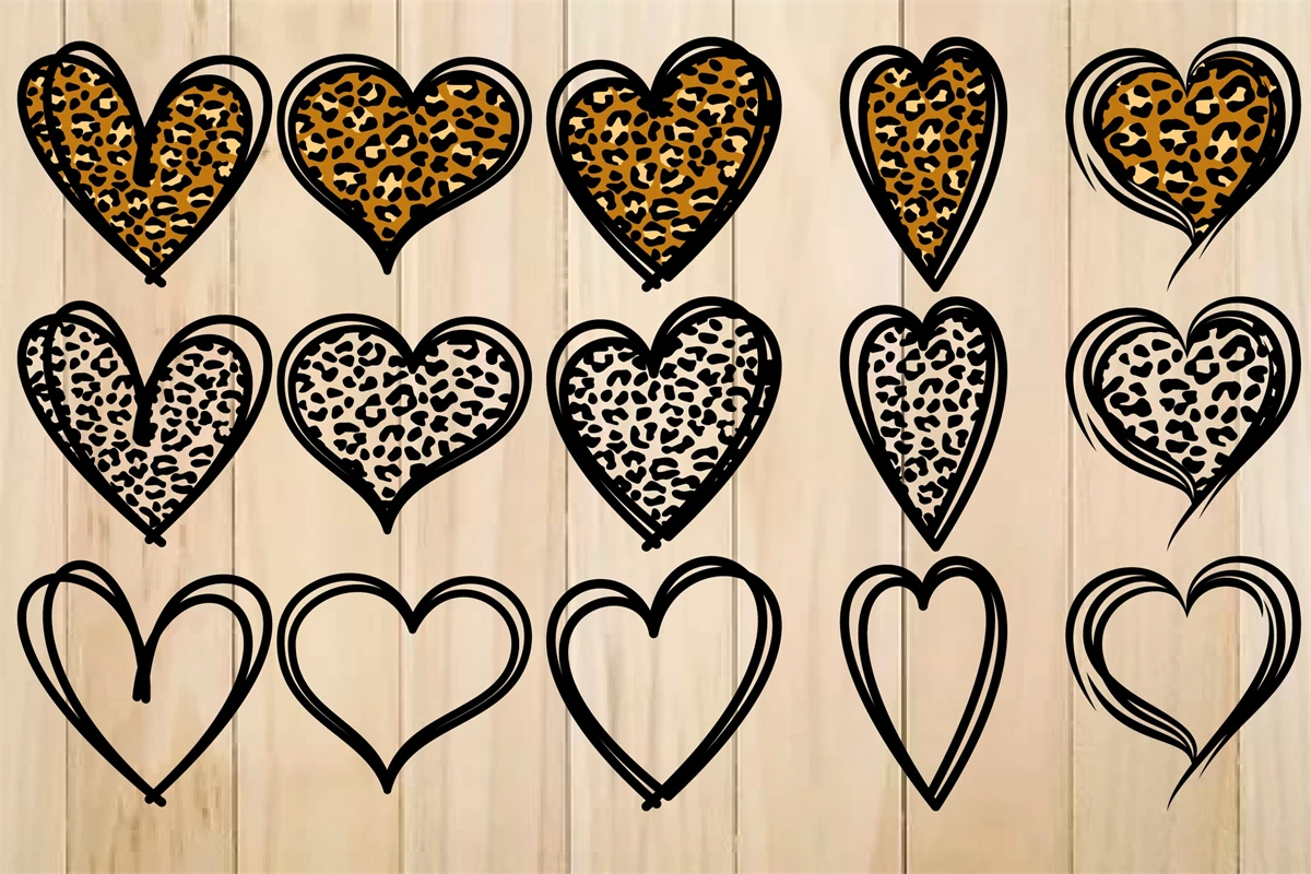 Hand-Drawn Leopard Heart , Cheetah Double Hearts Svg
