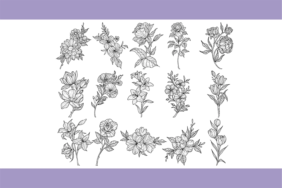 * 15 Hand Drawn Realistic Floral