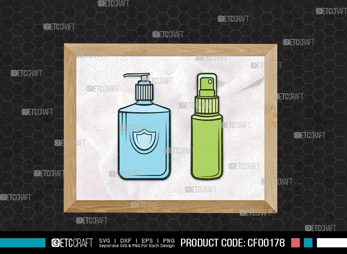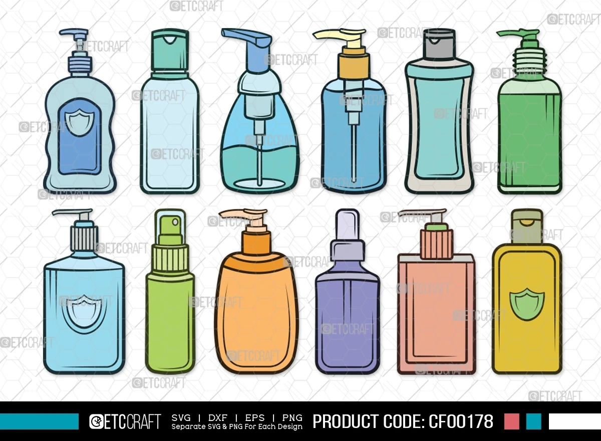 Enhance your hygiene-themed projects with the Hand Sanitizer Clipart Disinfectant Cleaner Spray Bottle SVG Cut File Bundle. Download now to unlock a world of creative possibilities and promote cleanliness in your designs and crafts!