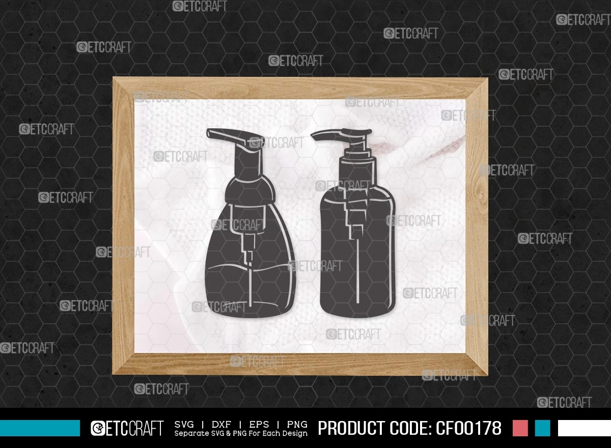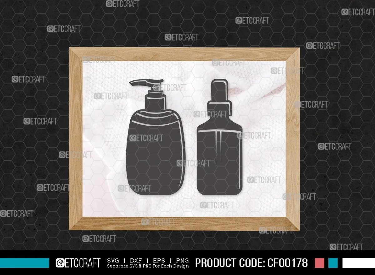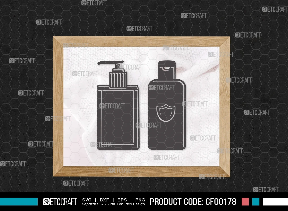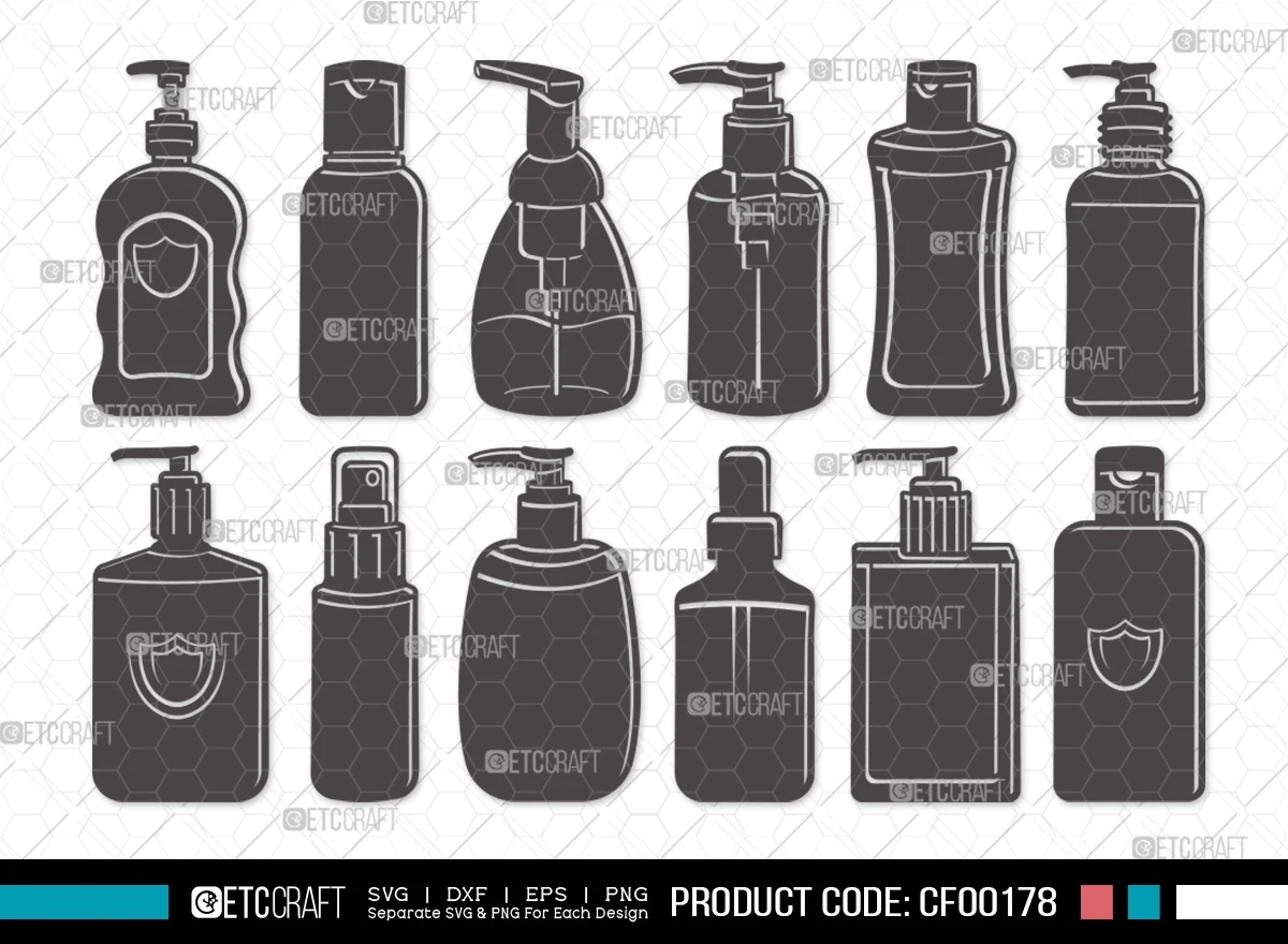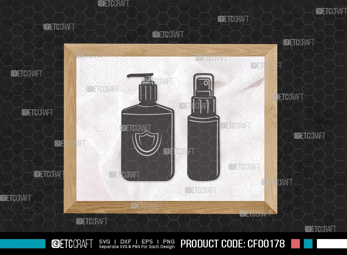 Upgrade your hygiene-themed projects with our Hand Sanitizer Silhouette Disinfectant Cleaner Spray Bottle SVG Cut File Bundle. This digital collection features meticulously designed SVG, DXF, EPS, and PNG files, showcasing a variety of versatile and detailed hand sanitizer and spray bottle silhouette designs. Whether you're promoting cleanliness, creating hygiene-related crafts, or a DIY enthusiast, this bundle is the perfect addition to your creative toolkit.