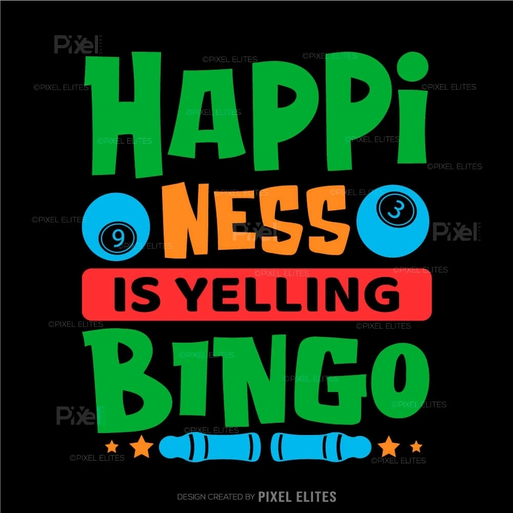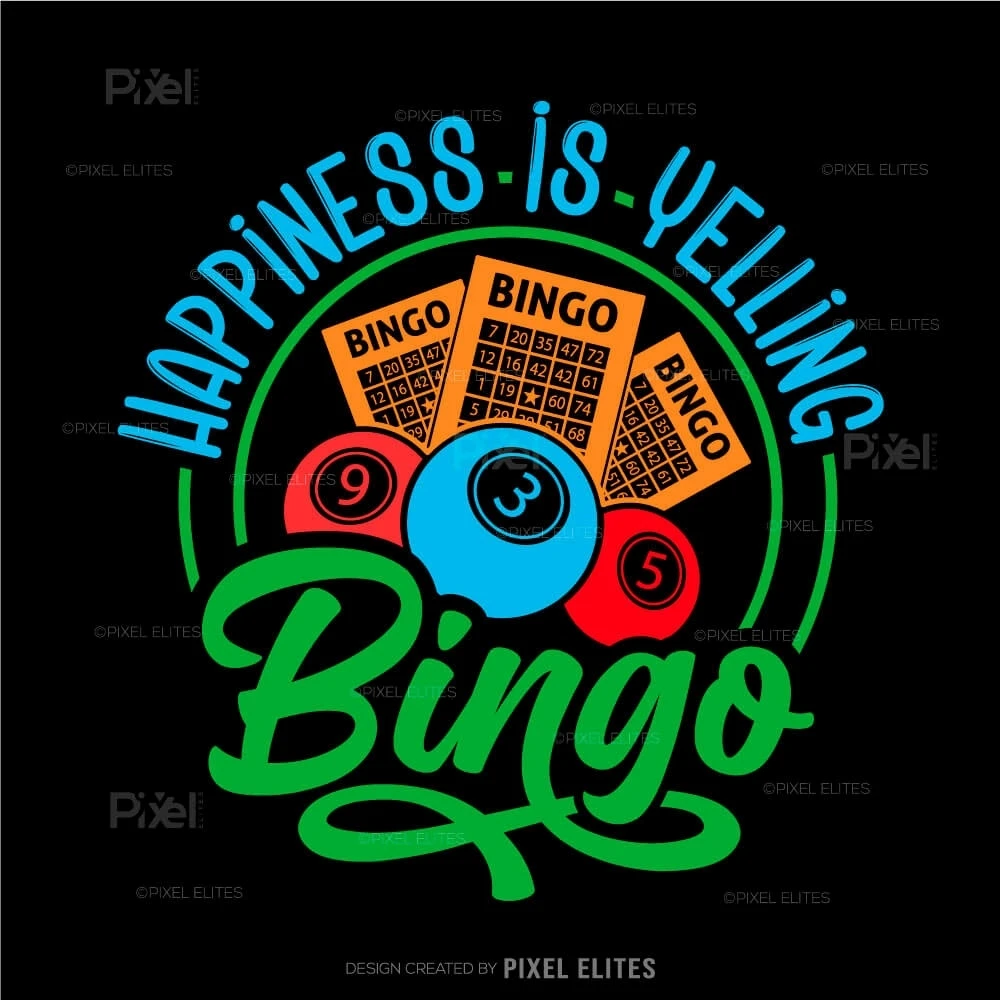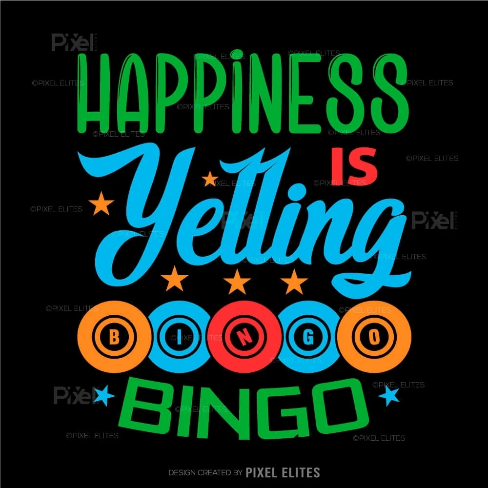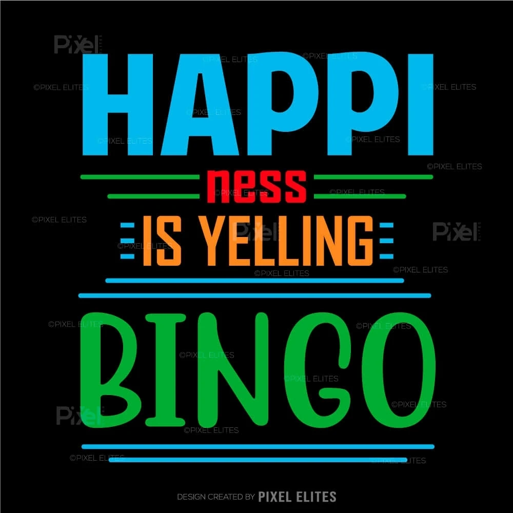- Joyful Design: The phrase "Happiness is Yelling Bingo" captures the thrill and excitement of the game, making it a perfect addition to your bingo-themed apparel or home decor.