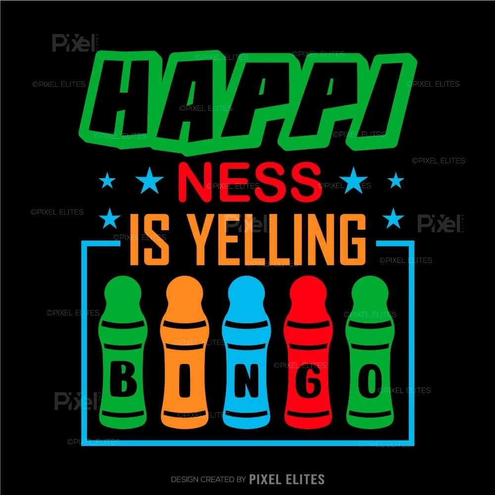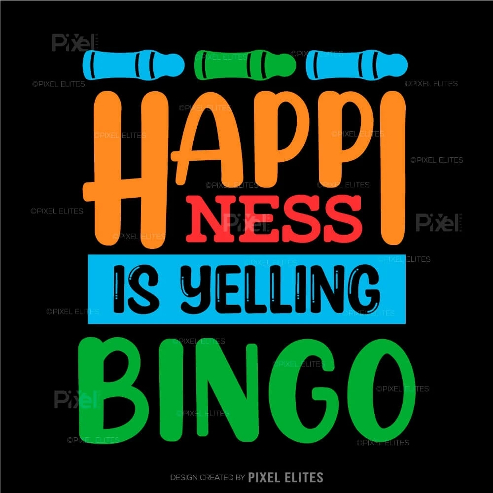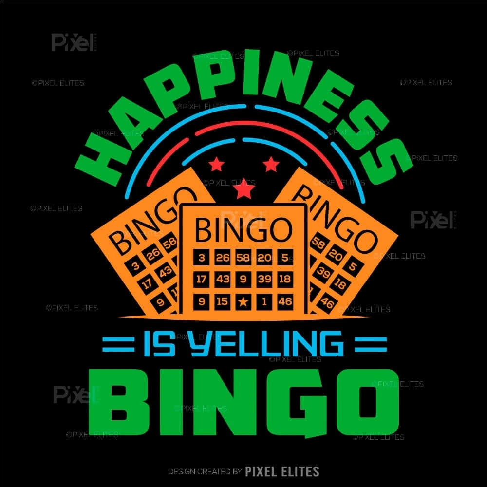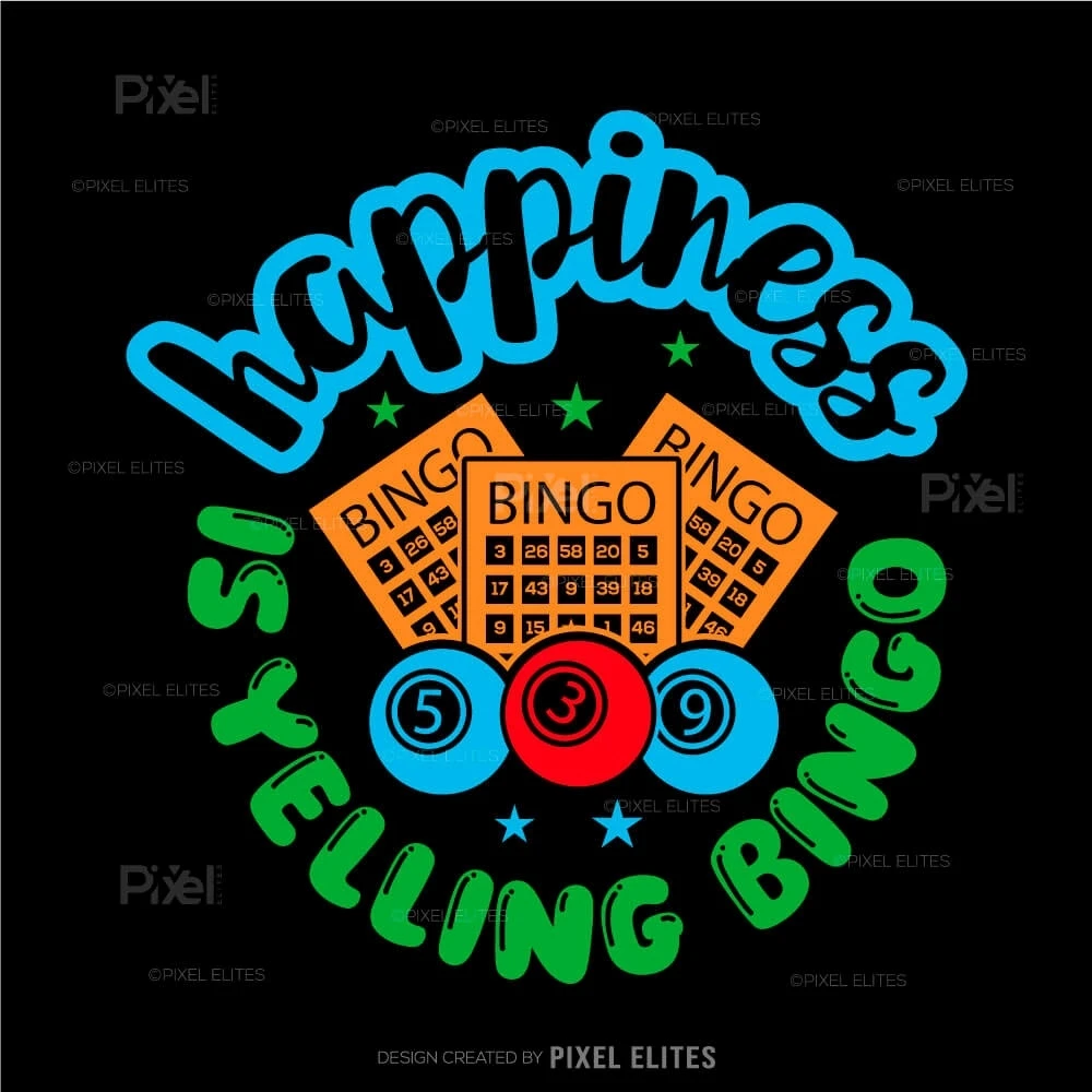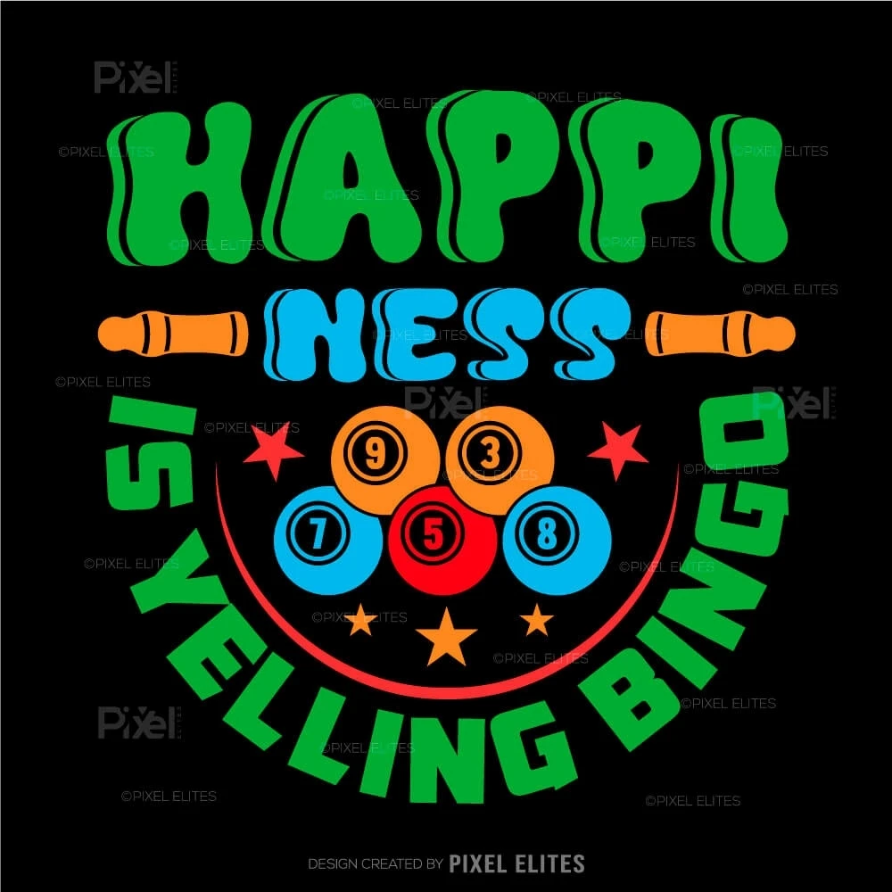 - Joyful Design: The phrase "Happiness is Yelling Bingo" captures the thrill and excitement of the game, making it a perfect addition to your bingo-themed apparel or home decor.