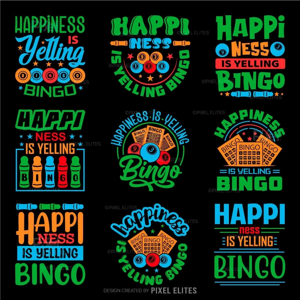 Happiness is Yelling Bingo SVG Cut File Fun Game Lover Quotes Design