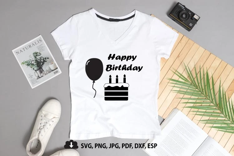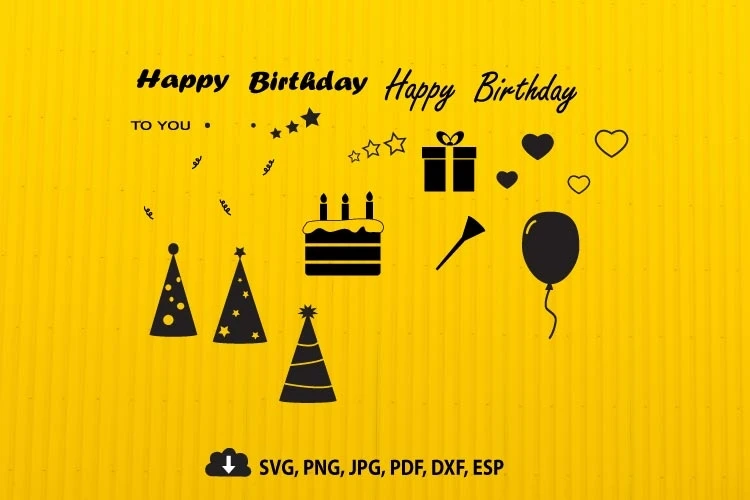 Happy Birthday Svg, Birthday Hat, Party Balloon, Birthday Cake, Birthday Bundle Party, Decorations Birthday Silhouette, Cut file Cricut