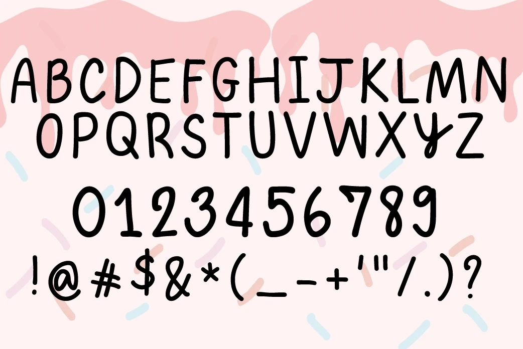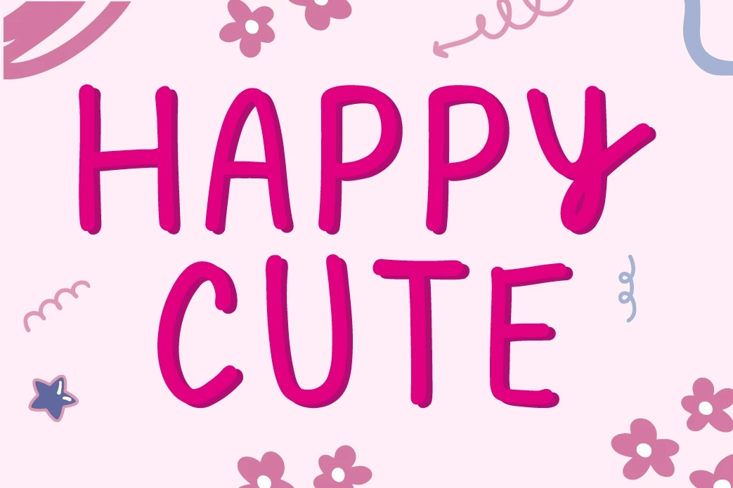 Happy Cute is font casual, and creative. Natural-looking handwritten letters, characters include uppercase, and lowercase letters,