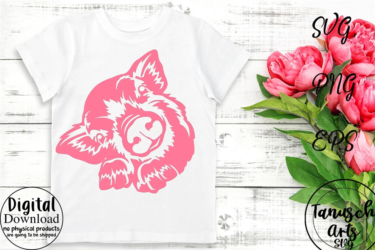 Hand painted smiling cute and dreaming pig SVG Bundle- design plus foot print and pig Foot print designs:)