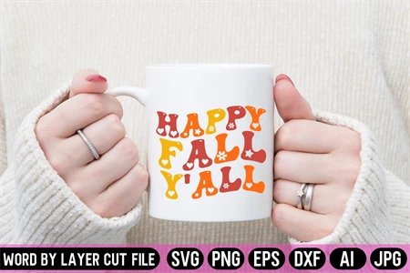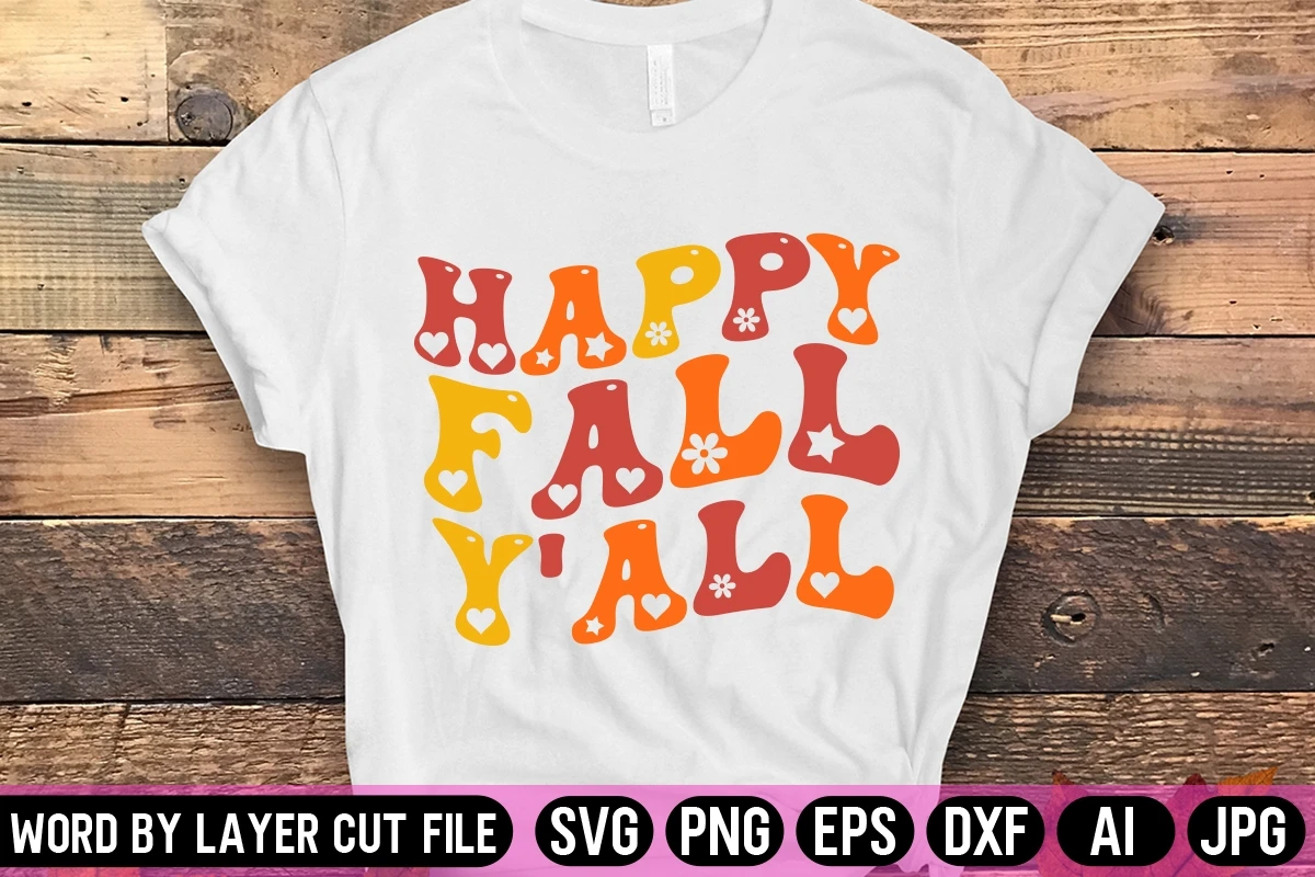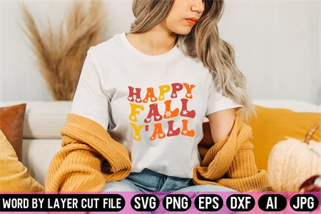 Happy Fall Yall Retro Svg Design, Retro Svg Cut File