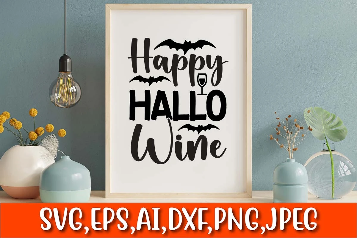 Happy Hallo Wine SVG Design, Halloween svg, Halloween