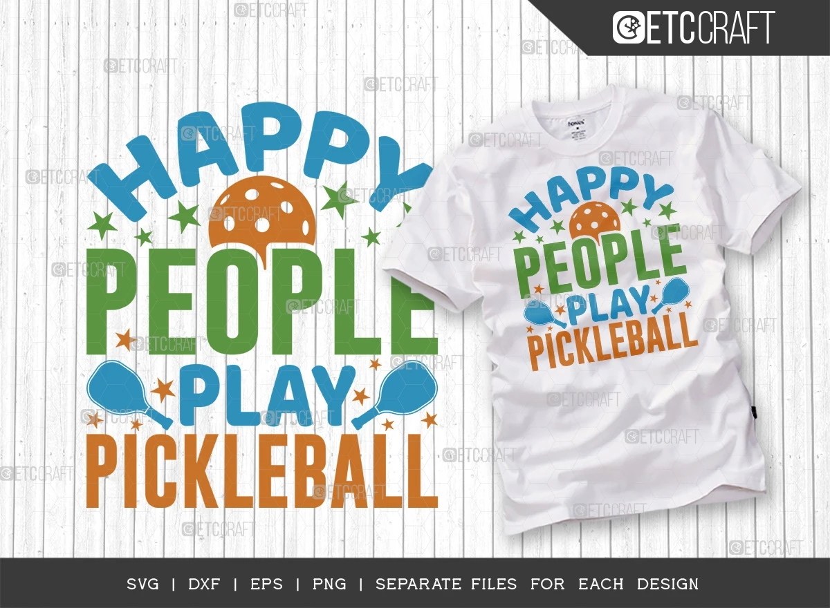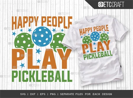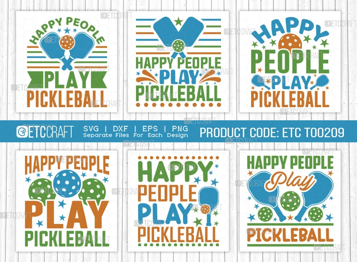 Incorporate the Happy People Play Pickleball SVG Bundle into your creative endeavors, celebrate your love for the game, and share your enthusiasm with the world. Order now and let the pickleball fun begin!