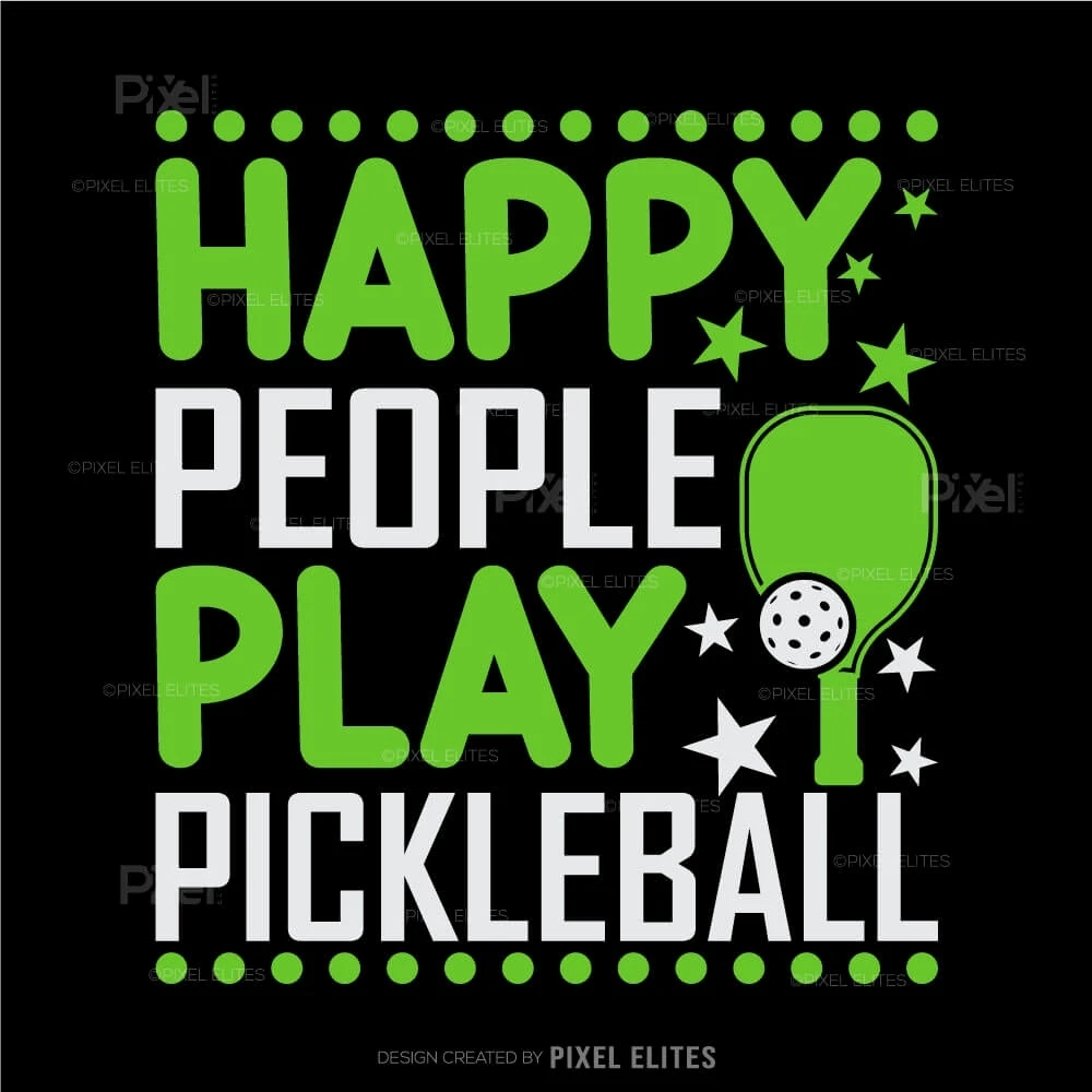 - Positive & Fun Quote: Happy People Play Pickleball highlights the happiness and social aspect of the sport.