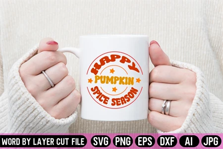 Happy Pumpkin Spice Season Retro Round Sign Svg Design