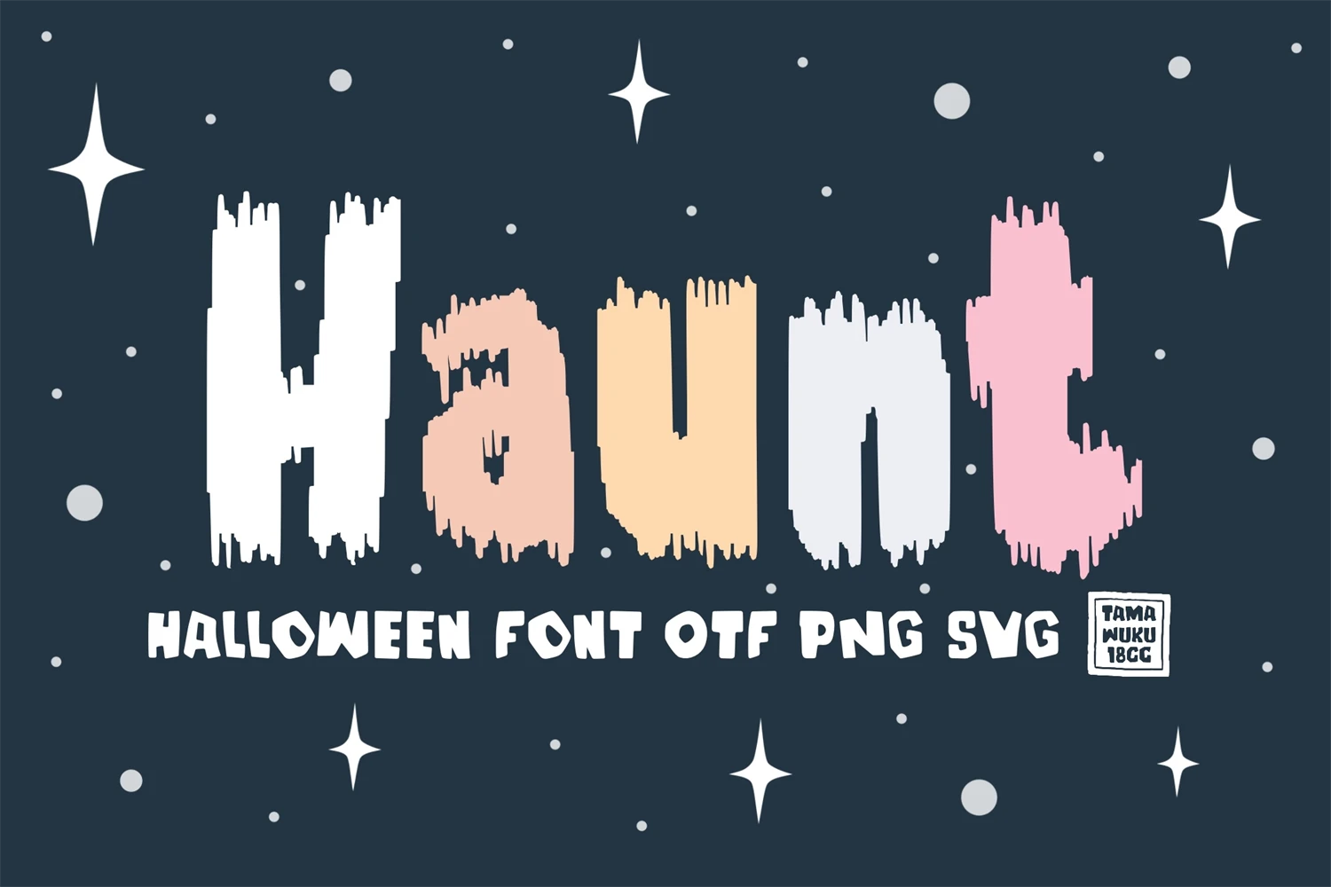 Haunt is a Halloween Theme Font. It looks a little runny and disgusting. Suitable for decorating during the festival. Perfect fit for all of your logos, branding, social media, crafty DIY projects, and much more!